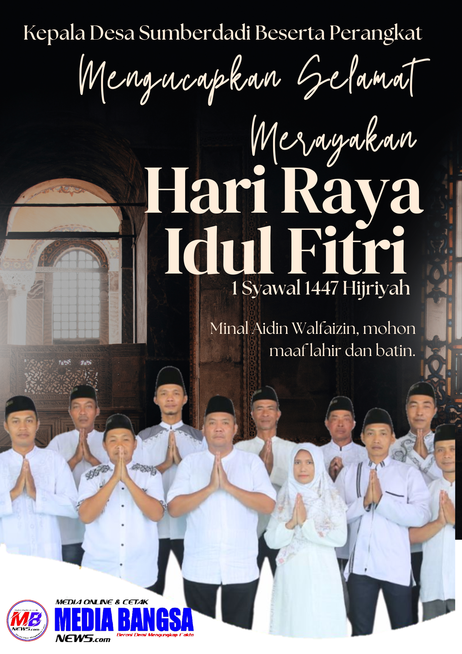 Kepala Desa Sumberdadi beserta seluruh perangkat desa mengucapkan: Selamat Hari Raya Idul Fitri 1447 H / 2026 M Berita|17/03/2026oleh Redaksi Lamongan, Mediabangsanews.com Kepala Desa Sumberdadi beserta seluruh perangkat desa mengucapkan: “Selamat Hari Raya