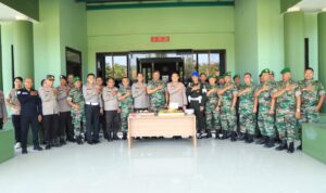 Gresik || Mediabangsanews.com || Kapolres Gresik AKBP Adhitya Panji Anom didampingi Wakapolres Kompol Erika Purwana Putra bersama PJU Polres Gresik mengunjungi Makodim 0817/Gresik, perlu diketahui pada tanggal 5 Oktober 2023 merupakan Hari Ulang Tahun Tentara Nasional Indonesia (TNI) ke-78, Kunjungan yang seyogyanya dilakukan kemarin sebagai bentuk silaturahmi dan ucapan selamat kepada TNI atas peringatan hari ulang tahunnya.