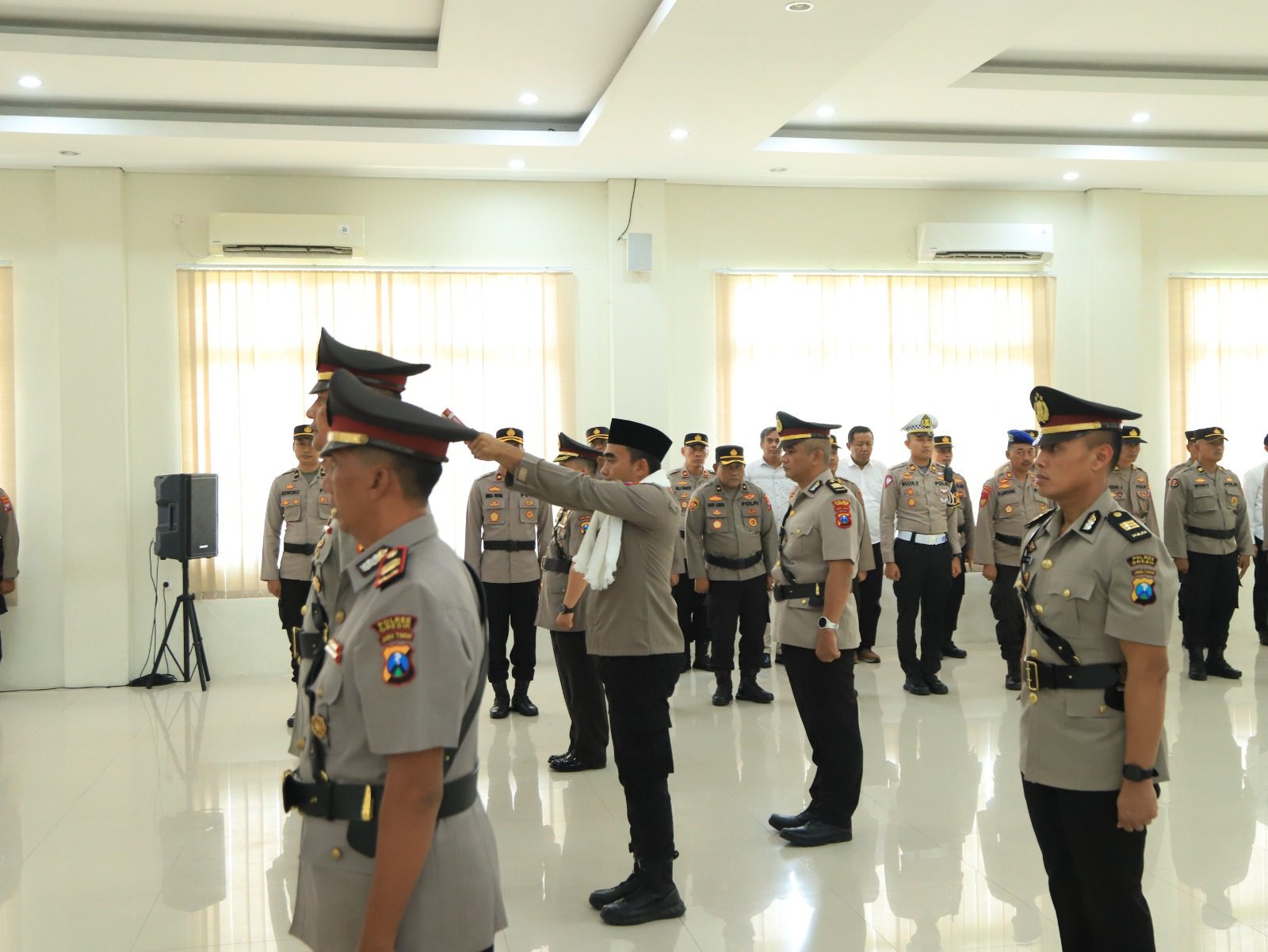 Sertijab Kapolsek dan Pejabat Utama Polres Gresik dihadiri oleh Wakapolres Gresik, Kompol Erika Purwana Putra, Pejabat Utama (PJU) Polres Gresik, Kapolsek jajaran Polres Gresik.