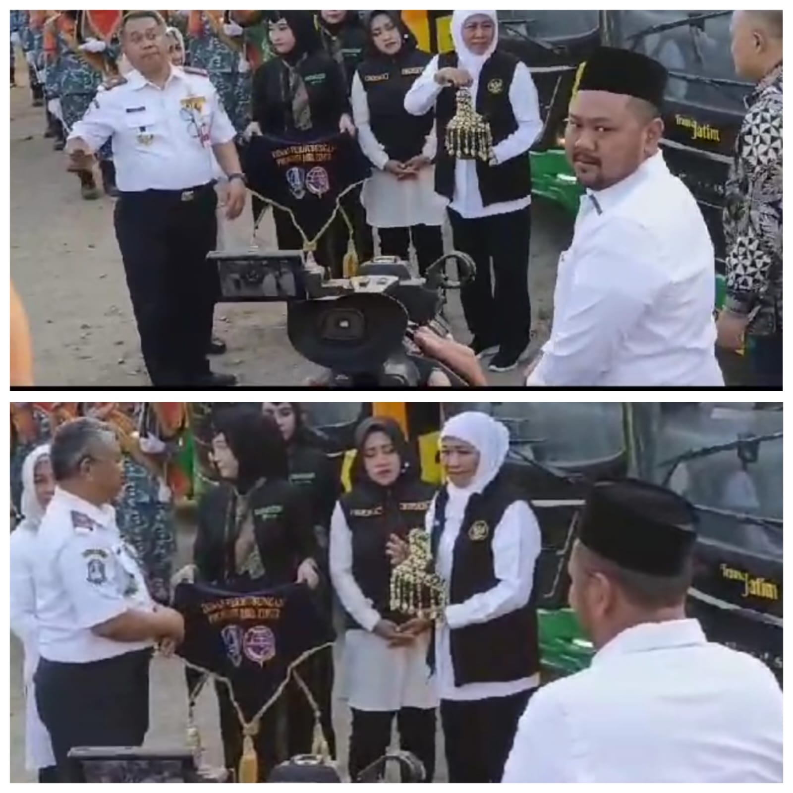 Sementara Peresmian pengoperasian armada bus Trans Jatim koridor III rute mojokerto – Balongpanggang Gresik, ditandai dengan memecahkan air kendi berisi kembang depan armada Bus Trans Jatim koridor III oleh Gubernur Khofifah Indar Parawansa