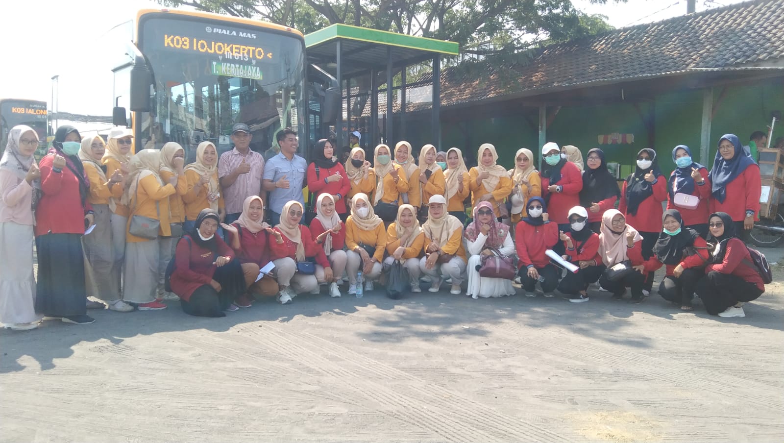 Ketua TP PKK Kec. Balongpanggang Zur’ah Amri Ajak Jalan Jalan TP PKK Desa ke Mojokerto Naik Bus Trans Jatim.