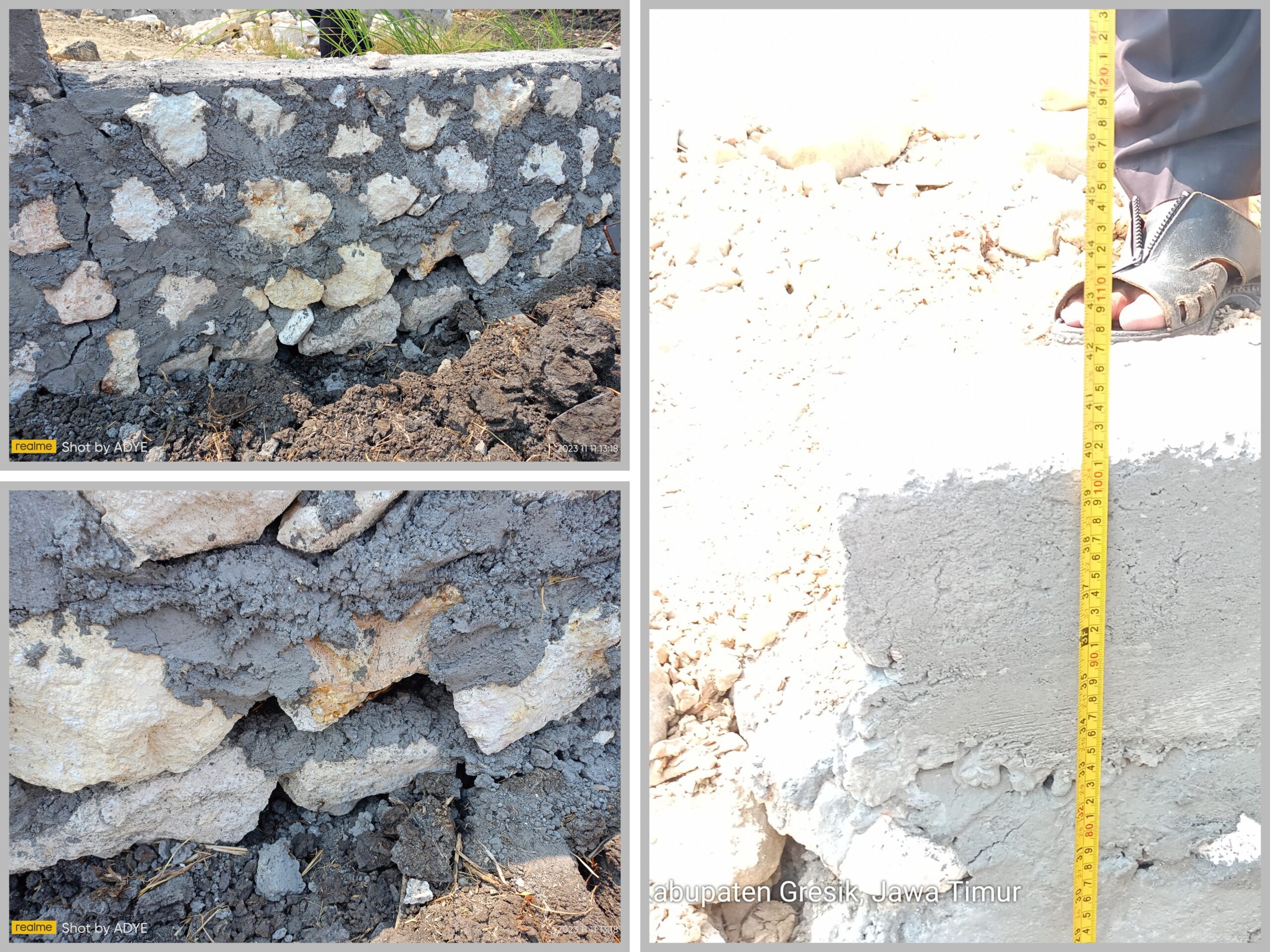 Tidak hanya itu saja batu yang dipakai diduga tidak sesuai Dengan Rencana Anggaran Biaya (RAB) serta terlihat ada dua jenis batu (batu kapur dan batu paras).dan ketinggian pelengsengan hanya sekitar 1 Meter saja.