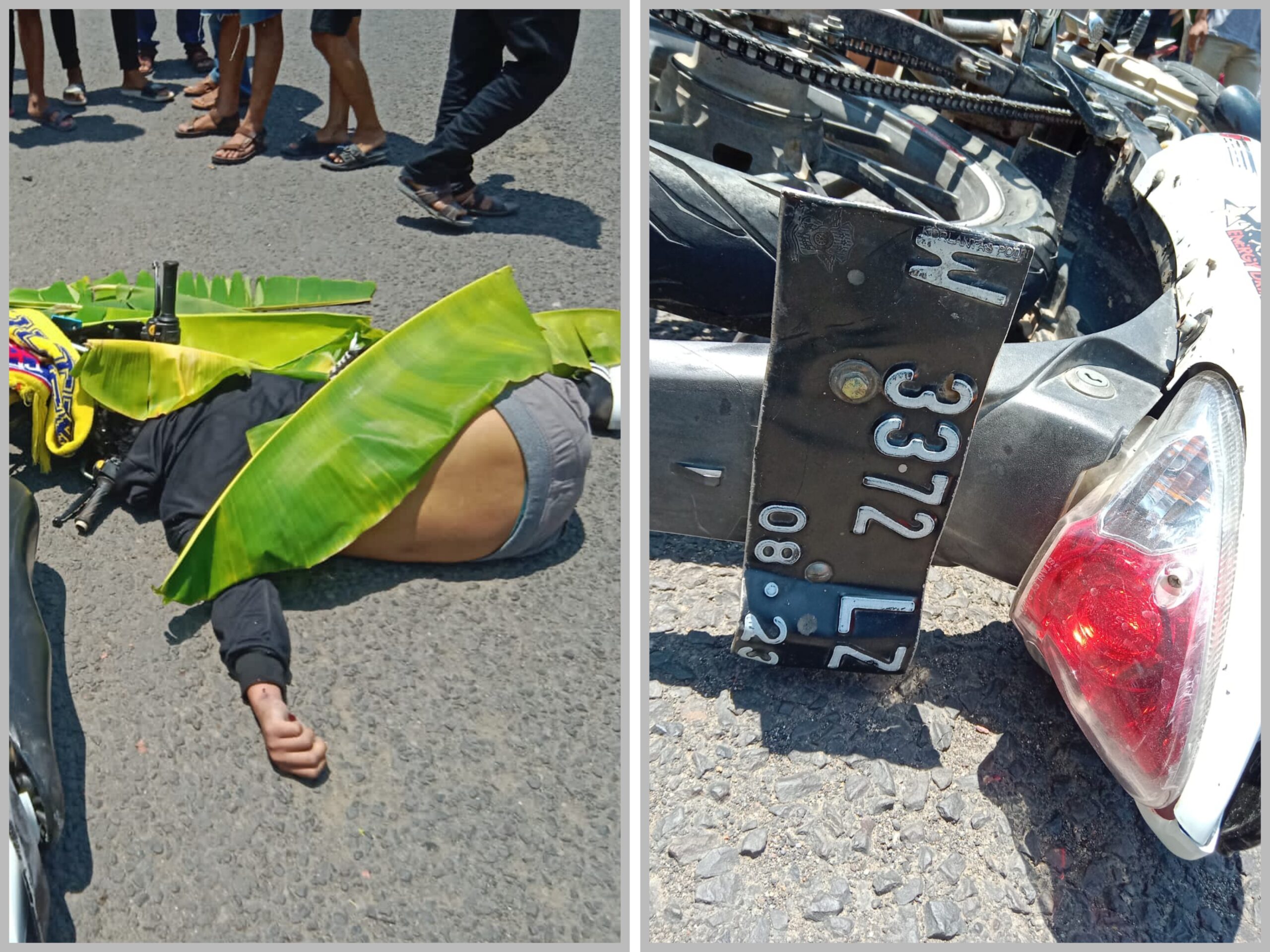 Warga sekitar tidak berani menyentuh korban hanya menutupi bercak darah dengan menggunakan daun pisang sampai pihak kepolisan datang. Sementara identitas korban dan motif dari kecelakaan tersebut masih belum diketahui.