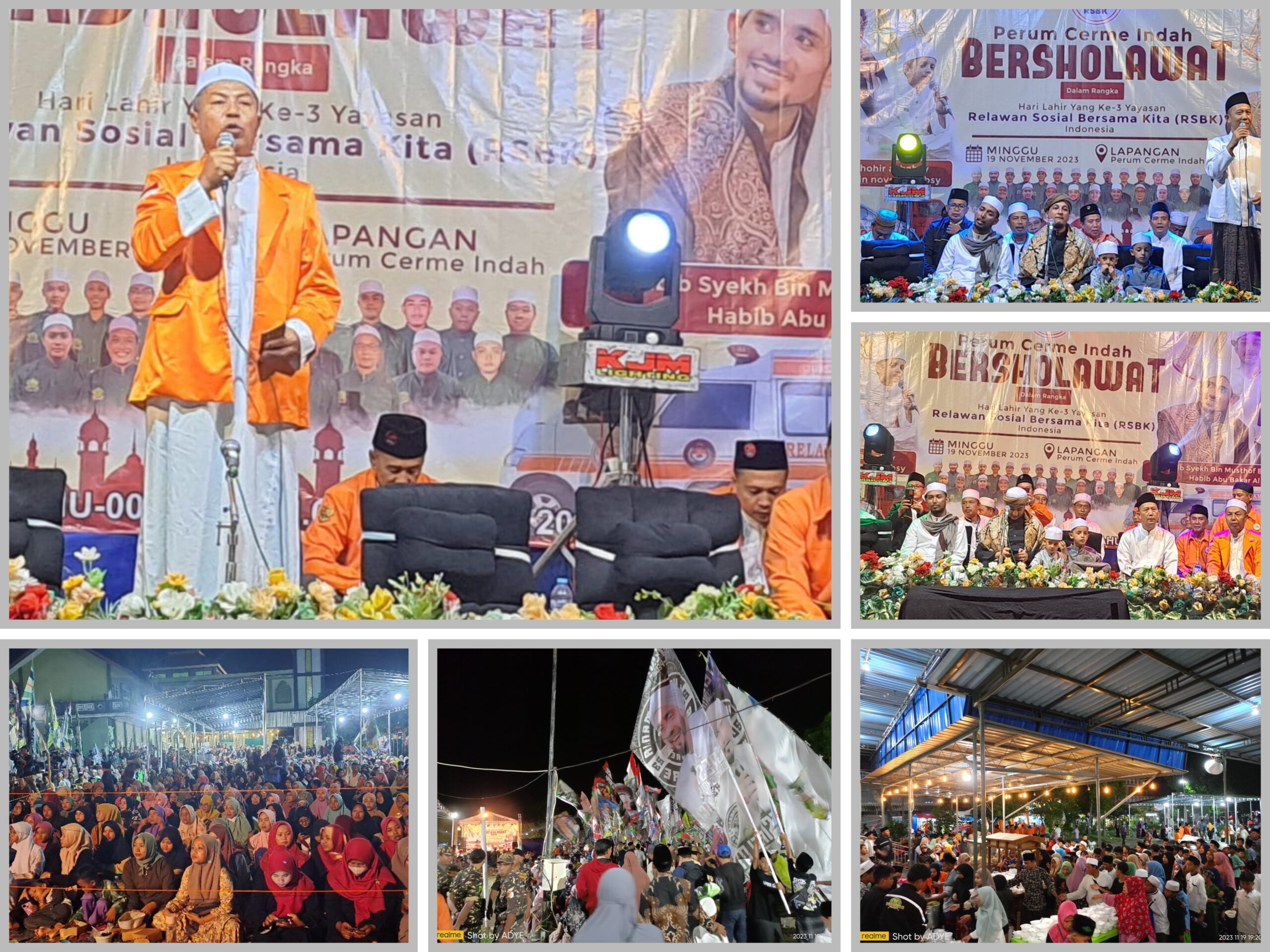Gresik.Mediabangsanews.com. ||Perayaan Hari Lahir (Harlah) Yayasan Relawan Sosial Bersama Kita (RSBK) yang ke 3 Tahun mengajak Masyarakat Perumahan Cerme Indah (PCI) untuk Bersholawat bareng Habib Novel bin Thohir Al Habsy, Sayyid Miqdad bin Novel Al Habsy, Al Habib Syekh bin Musthof  Ba’abut, Habib Abu Bakar Al Habsy. Pada Minggu 19/11/2023