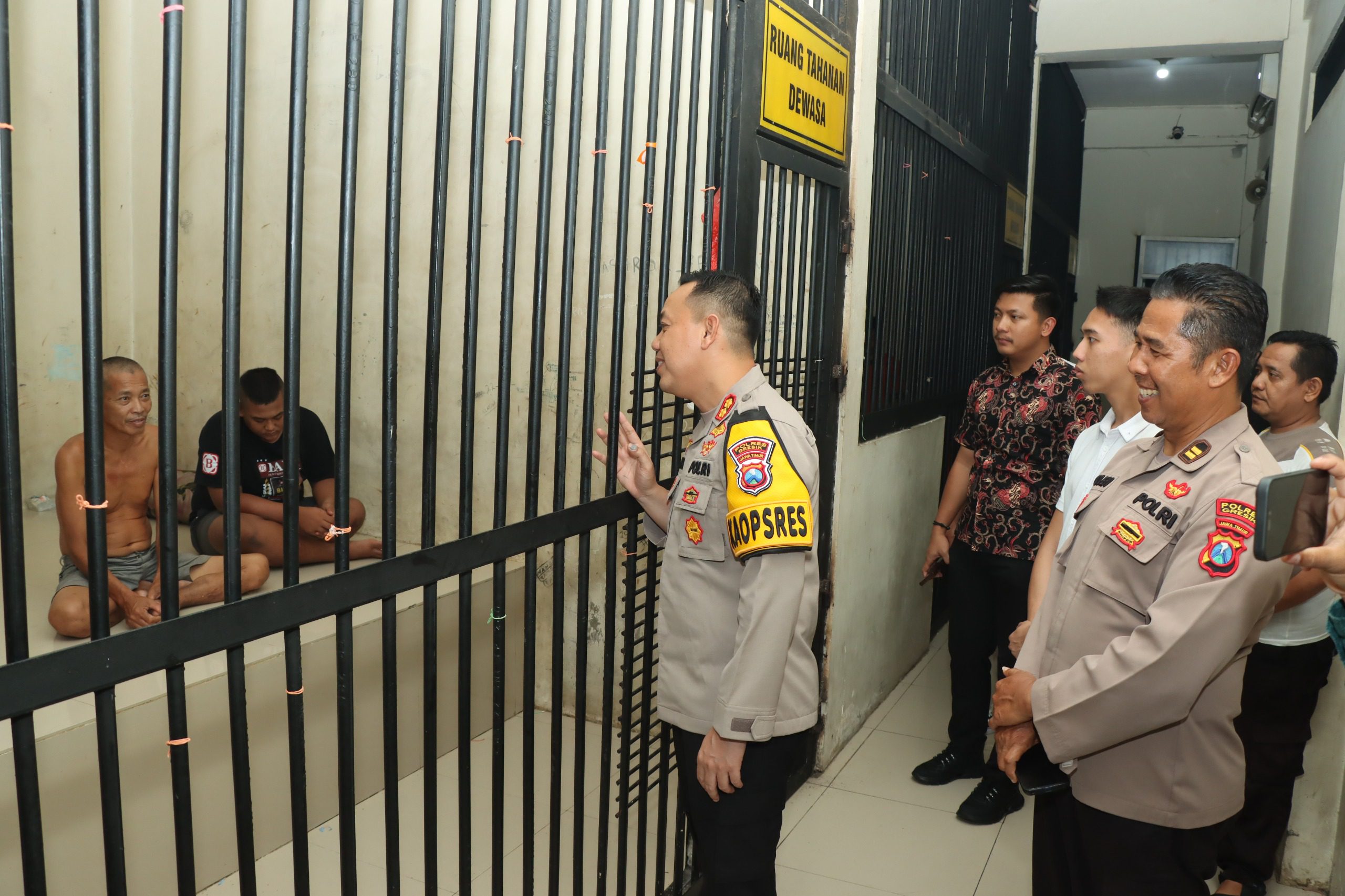 Guna memastikan keamanan ruang tahanan, Kapolres Gresik AKBP Adhitya Panji Anom bersama Wakapolres Gresik Kompol Erika Purwana Putra melakukan inspeksi rutin ke ruang tahanan untuk memastikan kondisi keamanan dan kesehatan tahanan.Rabu (06-12-2023).