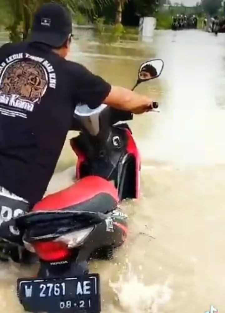 Ia (Sutrisno) menjelaskan ketinggian air mencapai kurang lebih antara 50 hingga 60 Cm. Demi ingin tanggung jawab terhadap keluarga dan kerjaan mas, meskipun motornya separoh tenggelam tetap tak dorong menuju jalan Raya Kedungrukem. Ungkapnya