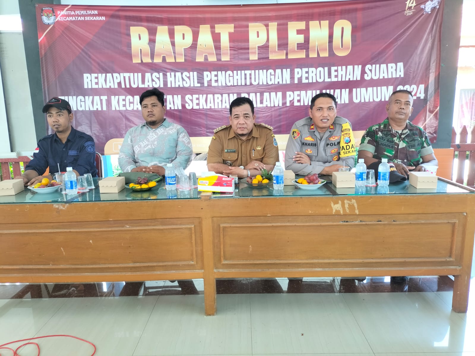 Lamongan. Mediabangsanews.com ||Bertempat di Pendopo Kecamatan Sekaran dilaksanakan kegiatan Rapat Pleno Rekapitulasi Daftar Pemilih Hasil Pemuktahiran Pemilu 2024 tingkat PPK Sekaran.(20/2/24)