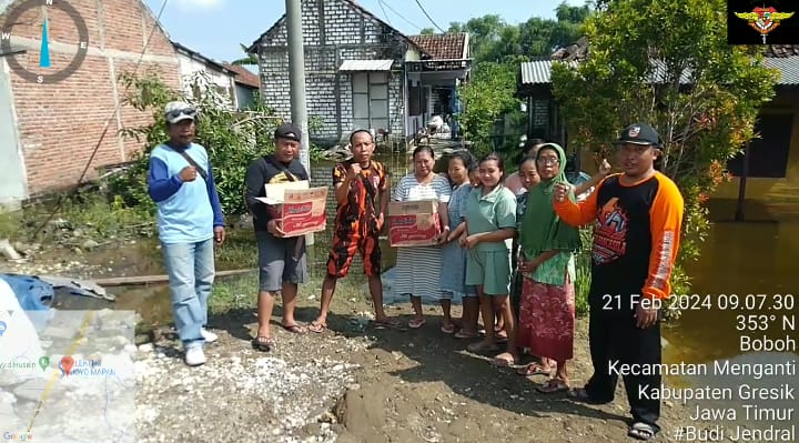 Gresik. Mediabangsanews.com ||Pimpinan Anak Cabang (PAC) Pemuda Pancasila (PP) Kecamatan Cerme melaksanakan giat sosial kepada warga yang terdampak banjir di Dusun Geger Wetan, Kecamatan Cerme, Kabupaten Gresik pada Rabu 21/02/2024.