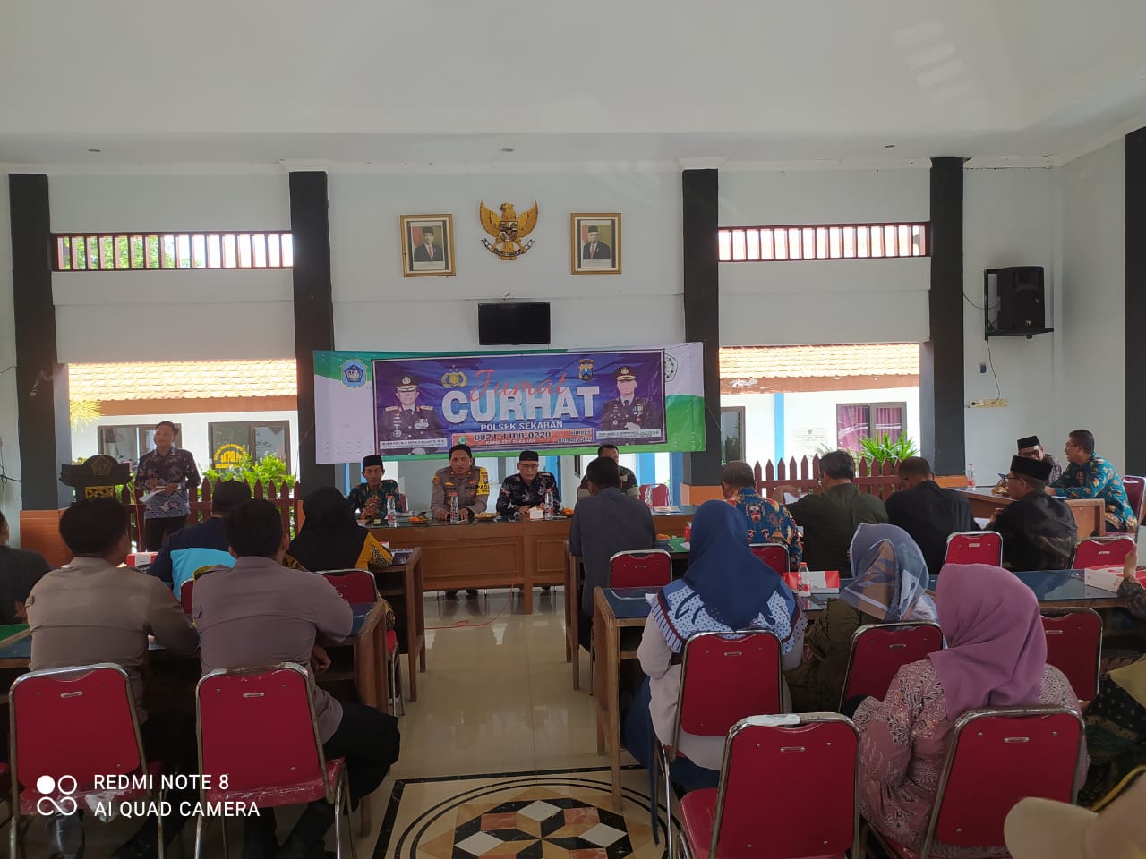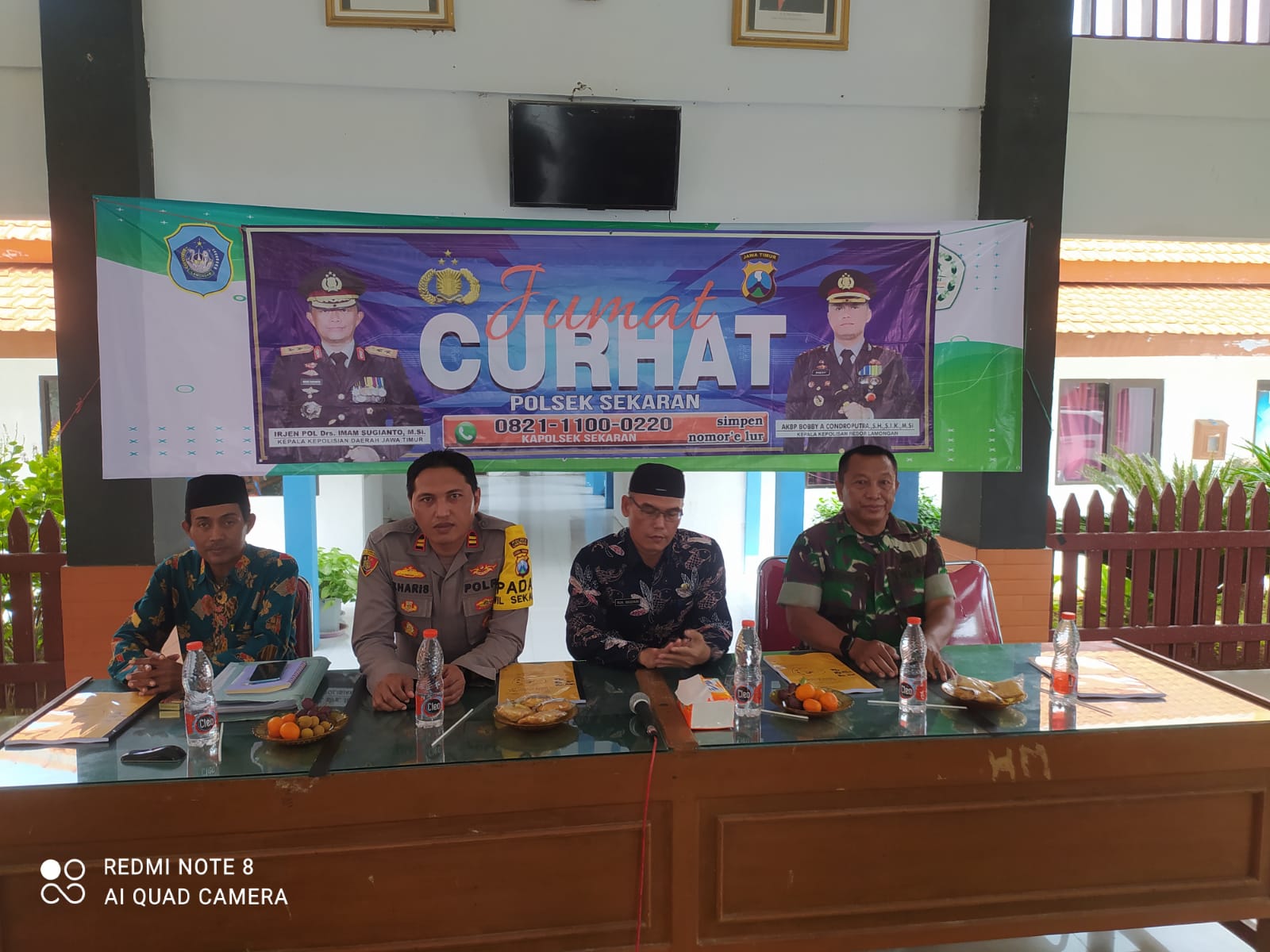 Selain Kapolsek Sekaran Iptu Kharis Ubaidillah, S.Sos MH juga dihadiri Sutaji, S,Kep Ners MAP (Camat Sekaran), Kapten Inf. Sobar Atnanto srlaku Danramil Sekarsn, Aiptu Misnan (Kanit IK), Aipda Priyanti (Kanit Binmas), Kepala desa se Kecamatan Sekaran dan warga masyarakat berkumpul bersama di Pendopo Kecamatan.