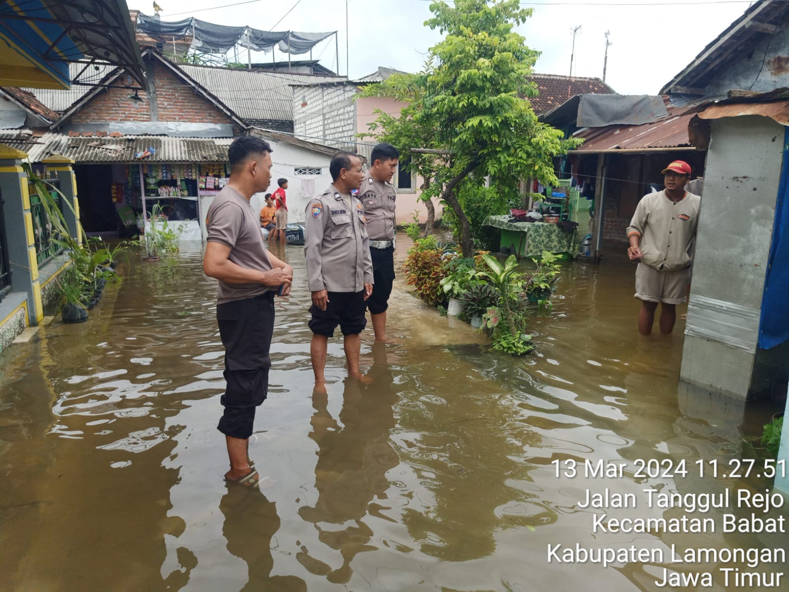 Kapolsek Babat menambahkan keteranganya bahwa di Dsn Tanggulrejo merupakan dataran rendah yang berada di wilayah Kec. Babat dan tepian dengan sungai bengawan solo dan dan ketinggian air yang menggenangi rumah warga bervariasi mulai dari 10 cm sampai dengan 20 cm.