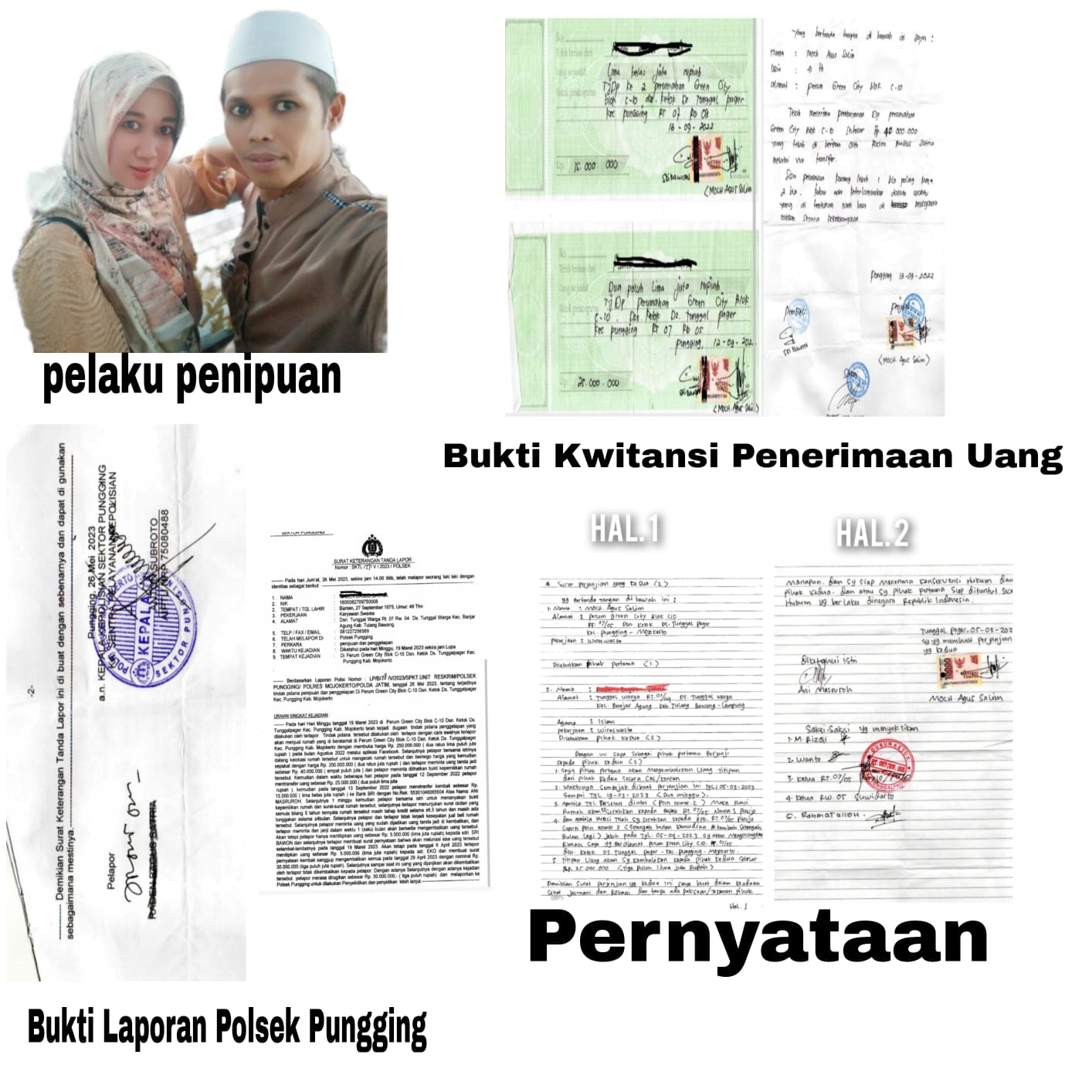 Laporan Korban Penipuan Di Polsek Pungging 1 Tahun jalan Di tempat, Pelaku Pasutri Moch Agus Salim dan Ani Masruroh bebas berkeliaran di mojosari ( Mojokerto)