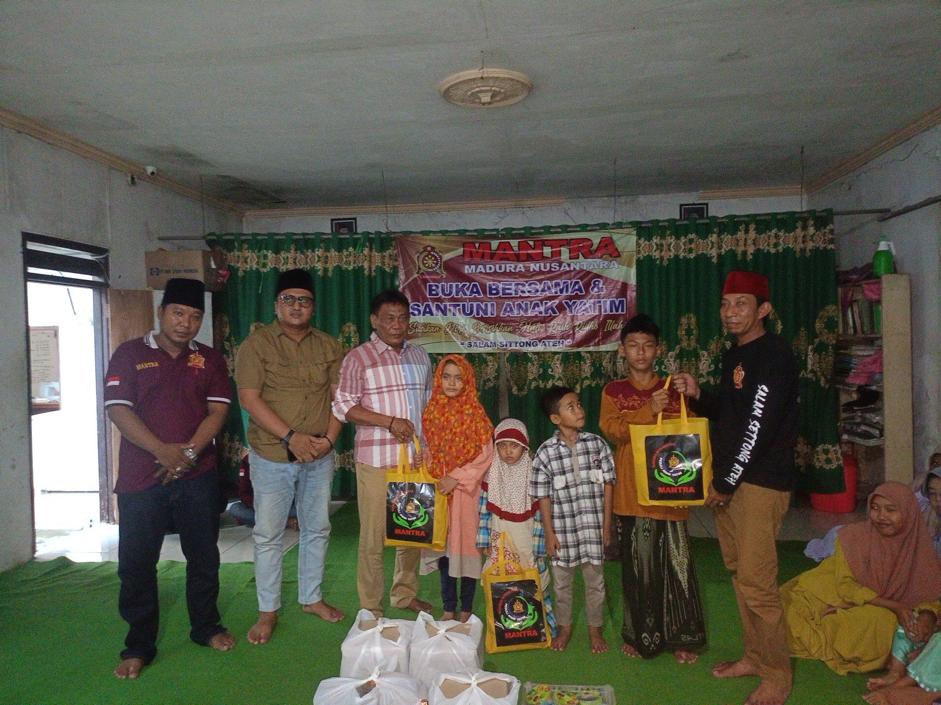 Selain menyantuni dan mengajak berbuka puasa bersama Ormas Mantra juga memberikan Sembako kepada anak yatim piatu.