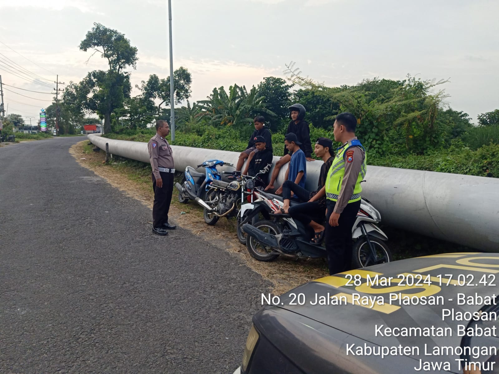Dalam pelaksanaan giat Patroli tersebut Patugas untuk mendatangi para anak muda yang sedang nongkrong pada tempat yang di anggap rawan terjadinya aksi kejahatan, untuk di berikan pesan Kamtibmas agar hati-hati dan tidak melakukan aksi kriminalitas, dan segera membubarkan diri, mengingat di daerah ini rawan aksi kejahatan.