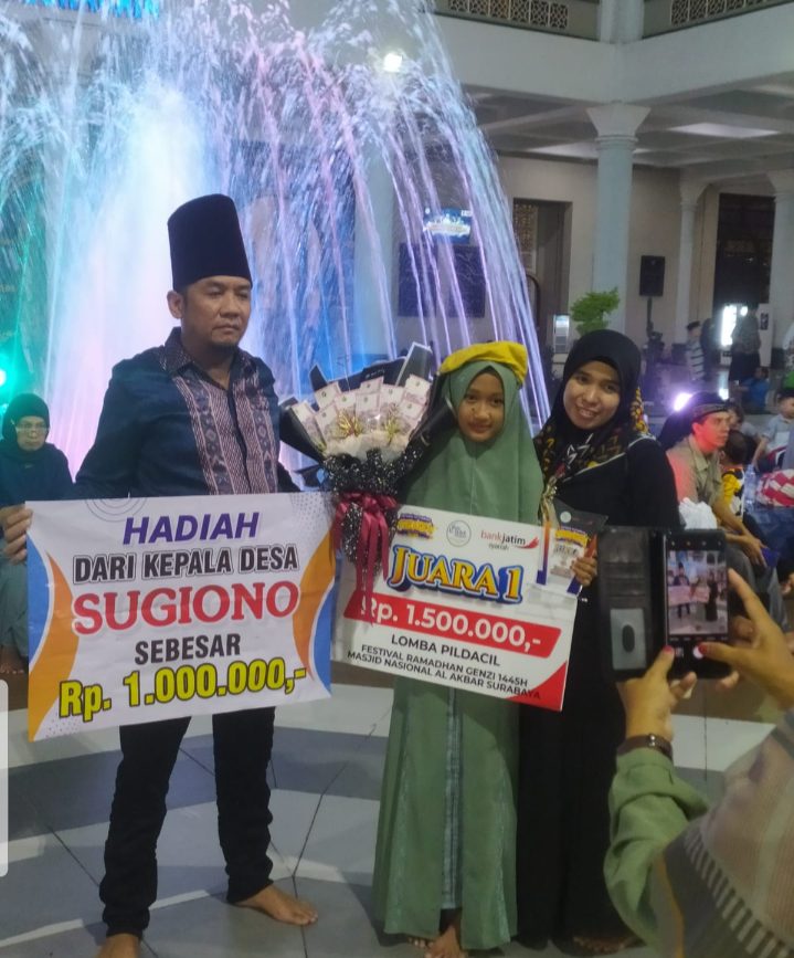 Siswi cantik yang ber asal dari Desa Sumberdadi tersebut berhasil menyabet Juara satu dalam lomba pemilihan Dai Cilik (Pildacil) yang diikutinya sejak pekan kedua Ramadhan 1445 H atau 22-24 Maret 2024.