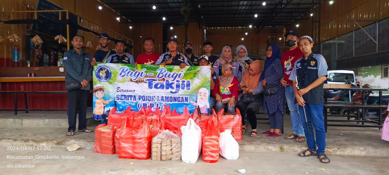 Dalam kesempatan tersebut dihadiri oleh semua pengurus Kordinator Wilayah Harian BERITA POJOK LAMONGAN dengan membagikan 500 paket takjil kepada para pengguna jalan dan dilanjutkan dengan pemberian santunan kepada anak yatim .