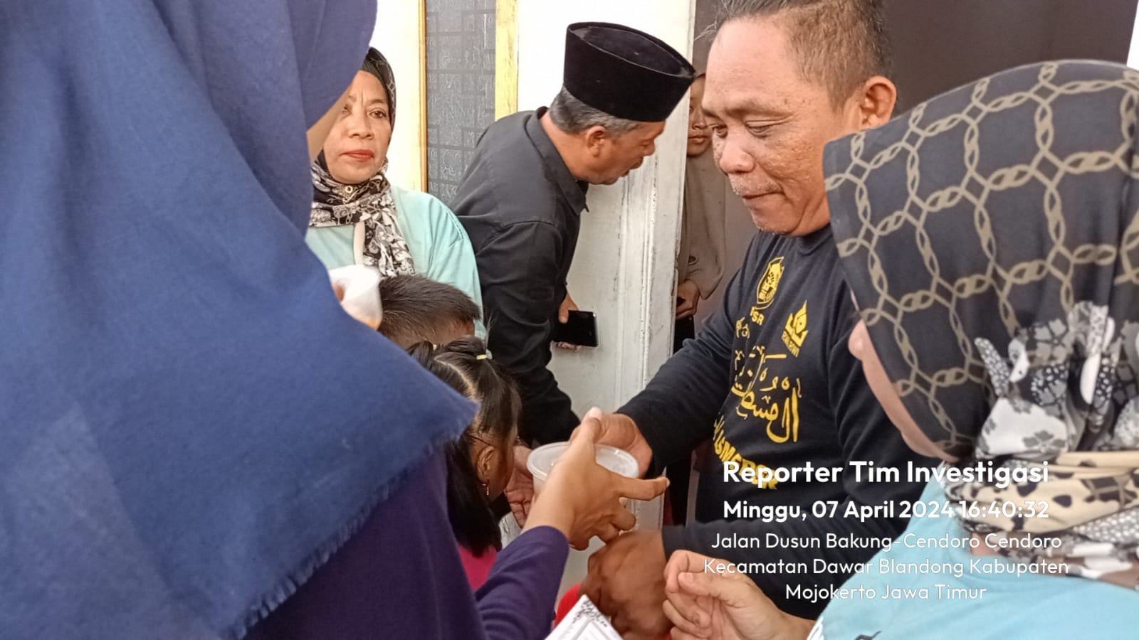 Pembagian bingkisan lebaran dan buka bersama bareng LSM FPSR di selenggarakan di Dusun Bakung, Desa Cendoro, Kecamatan Dawarblandong, Kabupaten Mojokerto.