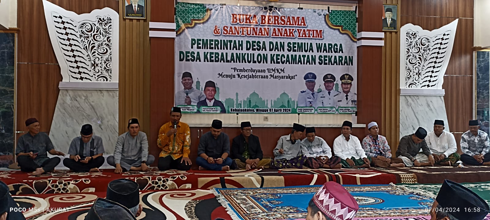 “Alhamdulillah saya sampaikan atas terselenggaranya acara buka bersama ini, saya ucapkan banyak terima kasih kepada seluruh warga Desa Kebalan Kulon yang sudi mendukung agar kegiatan ini dapat berjalan dengan lancar,” ungkapnya dalam sambutan.