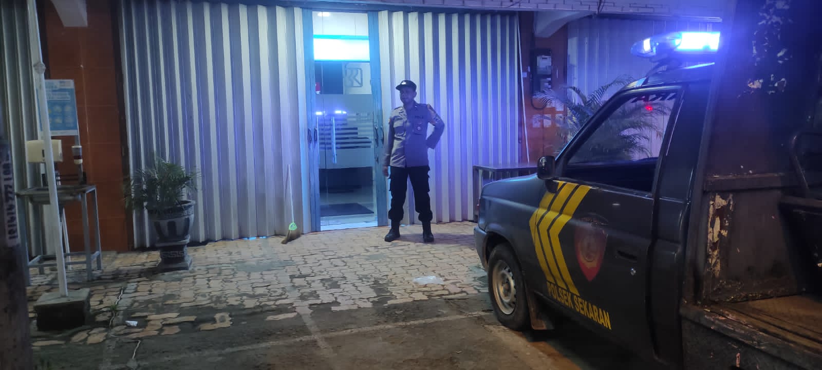 Lamongan, Mediabangsanews.com || Polsek Sekaran laksanakan, Giat Patroli Malam Kunjungi Bank BRI Unit Sekaran Sampaikan Himbauan Kamtibmas Kepada Petugas Keamanan, (23/04/24)