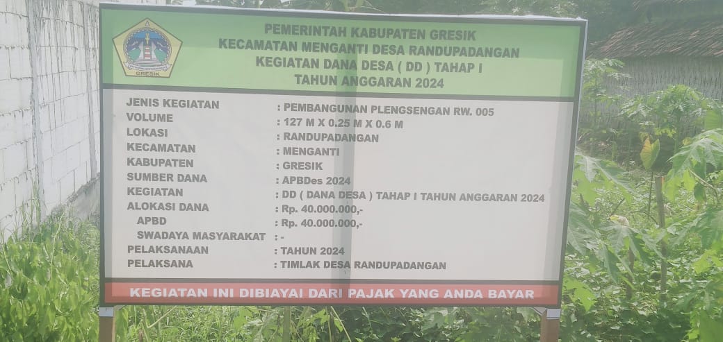 Saa datang kekantor Balai Desa untuk konfirmasi media ditemui Oleh Sekretaris Desa (Sekdes) Randu Padangan Syamsul Arif. Sekdes mengatakan bahwasanya papa nama sudah dipasang sejak awal pengerjaan, katanya