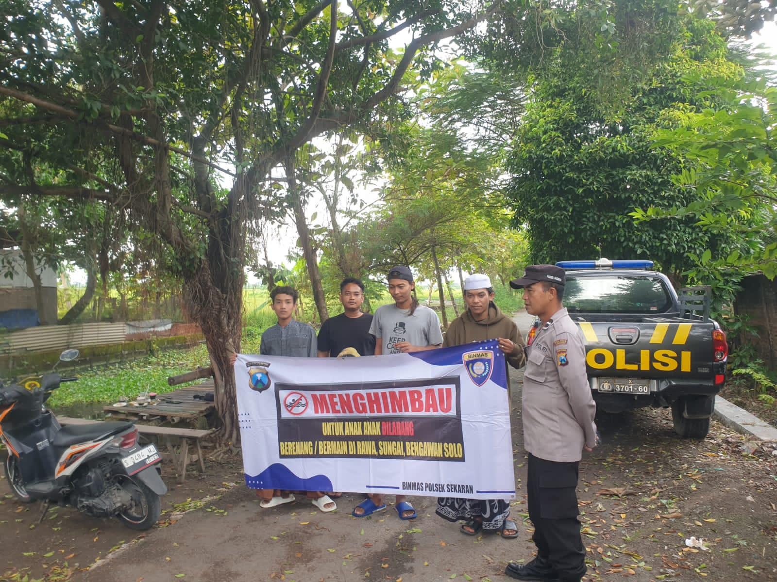 Kemudian Petugas berhenti sejenak untuk menyapa para santri untuk menyapa dan memulai obrolan santai perihal kegiatan sehari-hari selama didalam pondok pesantren setelah itu tidak lupa memberikan himbauan dan arahan himbauan Kamtibmas perihal bahaya tenggelam di area sekitar sungai, telaga rawa dan bengawan.