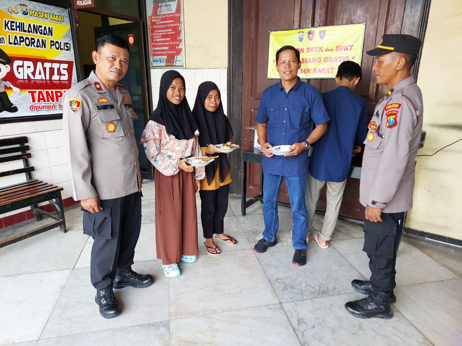 Langkah Polsek Babat untuk meningkatkan pelayanan bagi pemohon SKCK (Surat Keterangan Catatan Kepolisian) dan SPKT (Sentra Pelayanan Kepolisian Terpadu) dengan mengadakan makan siang gratis dengan masyarakat pada sebuah rumah makan yang ada di wilayah Babat.