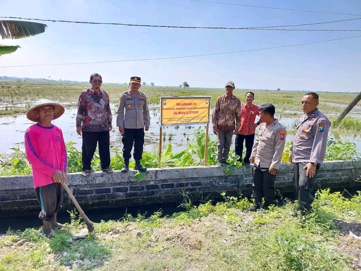 Kapolsek Babat Turun Langsung Pemasangan Banner Himbauan Dilarang Memasang Perangkap Tikus Mengunakan Aliran Listrik Di Sawah