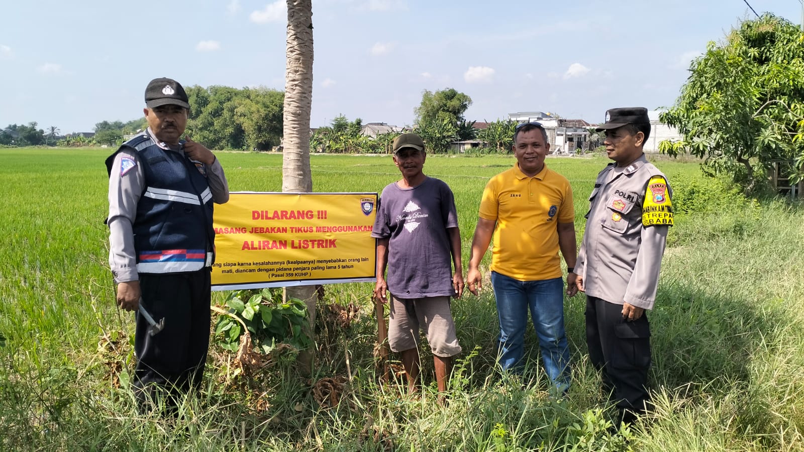 Selaku Kanit Binmas Polsek Babat Aipda Sholikin bersama perangkat Desa Datinawong menghimbau dengan pada masyarakat petani untuk tidak memasang jebakan tikus beraliran listrik, dengan memasang banner himb