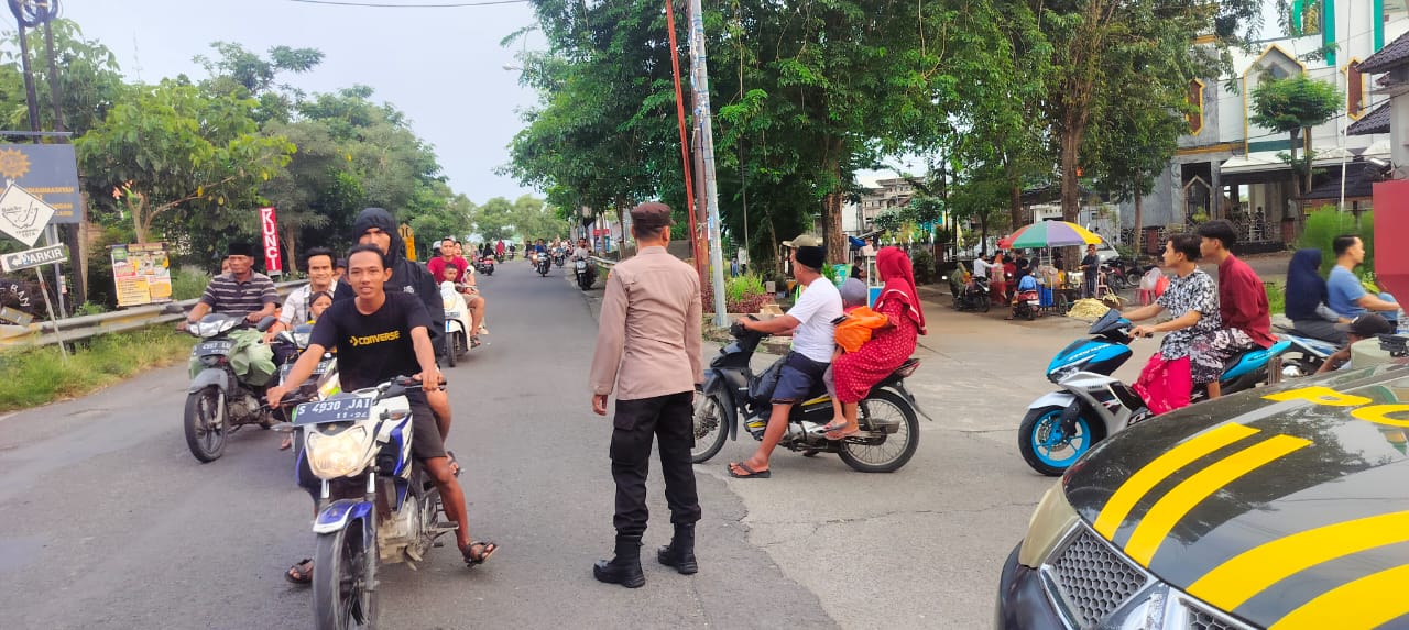 Anggota Polsek Laren Polres Lamongan melaksanakan commander wish (CW), dalam kegiatan tersebut bertujuan memberikan pelayanan prima kepada masyarakat pengguna jalan agar tidak terkendala oleh kemacetan yang terjadi karena ramainya pasar dan masyarakat uang sedang melintas di perempatan jalan.