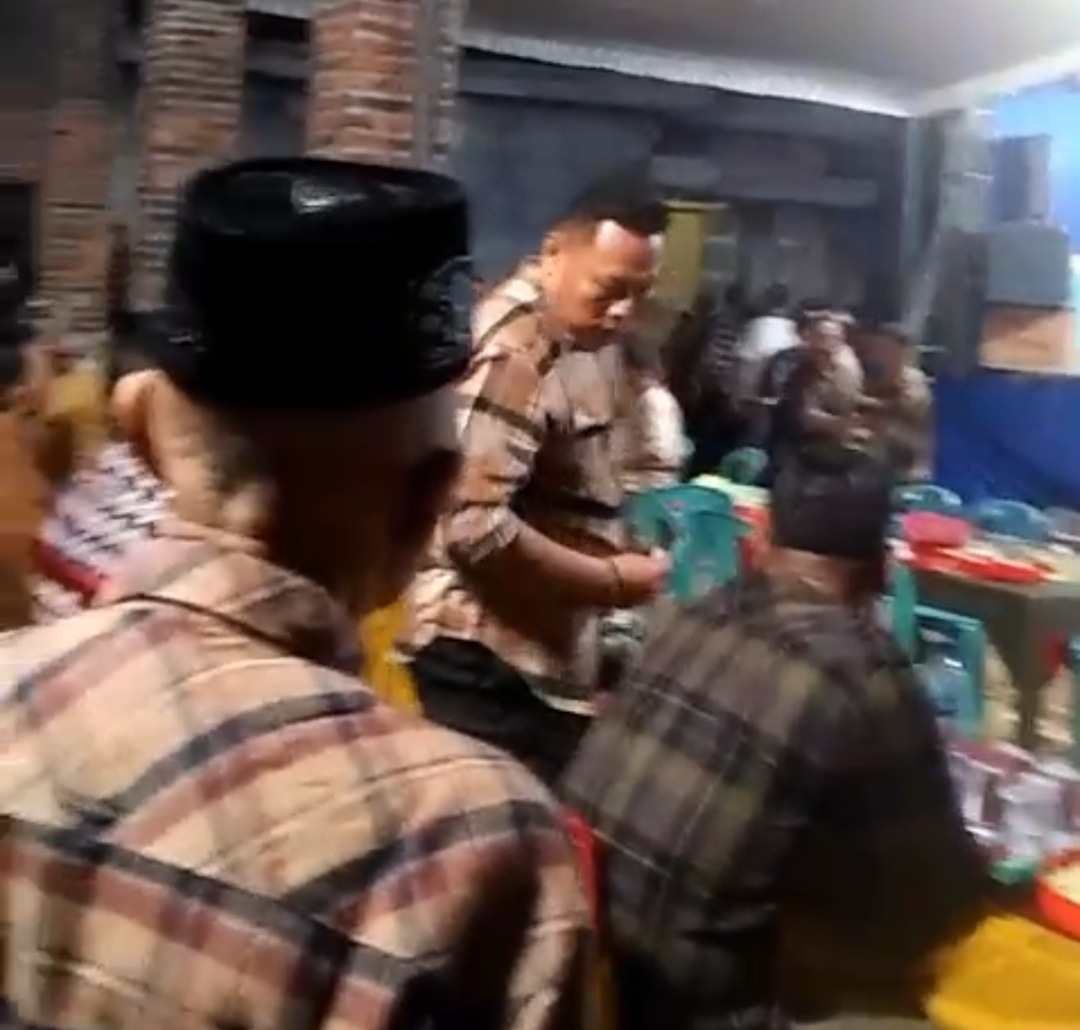 Mengetahui hal tersebut Bhabinkamtibmas Desa Slempit menghentikan sesaat acara tersebut. Setelah situasi aman acara dilanjutkan kembali.