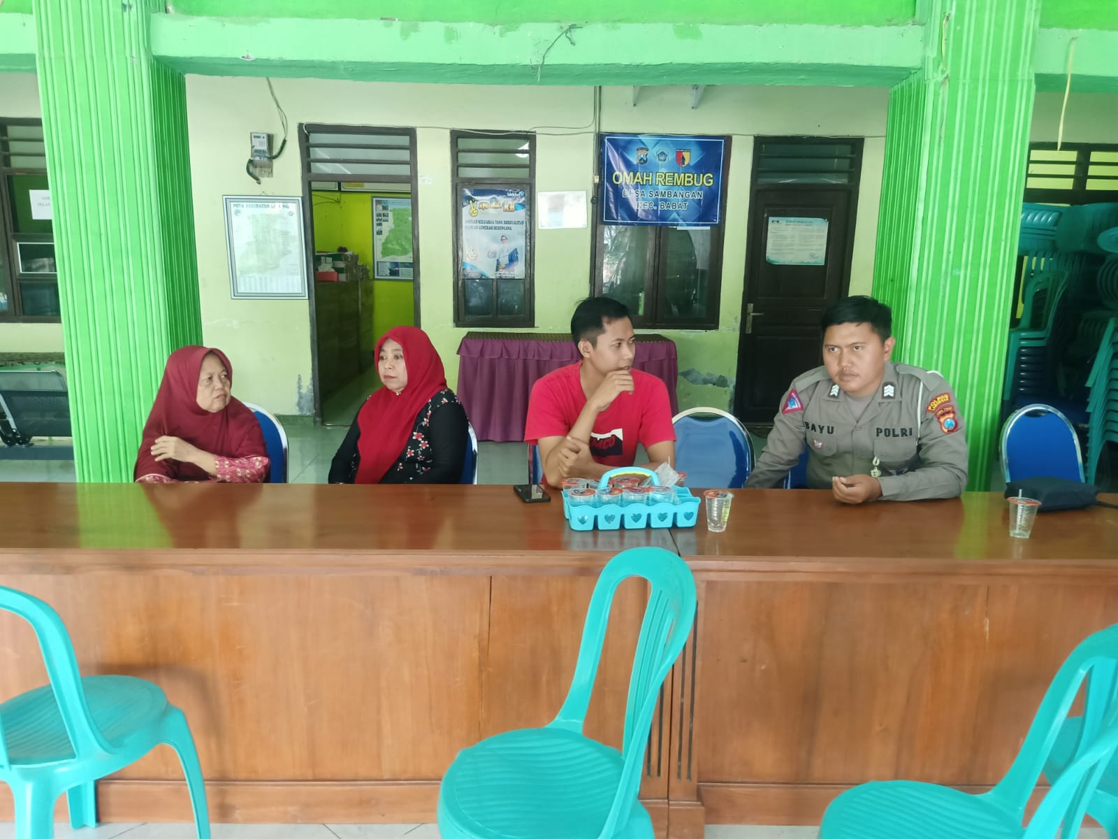 Lamongan, Mediabangsanews.com || Bhabinkamtibmas Polsek Babat Polres Brigadir Bayu melakukan upaya dalam mencegah gangguan kamtibmas, dengan melaksanakan giat sambang di kantor Desa Sambangan Kecamatan Babat untuk bertemu langsung dengan perangkat Desa Binaannya. (13/06/24)