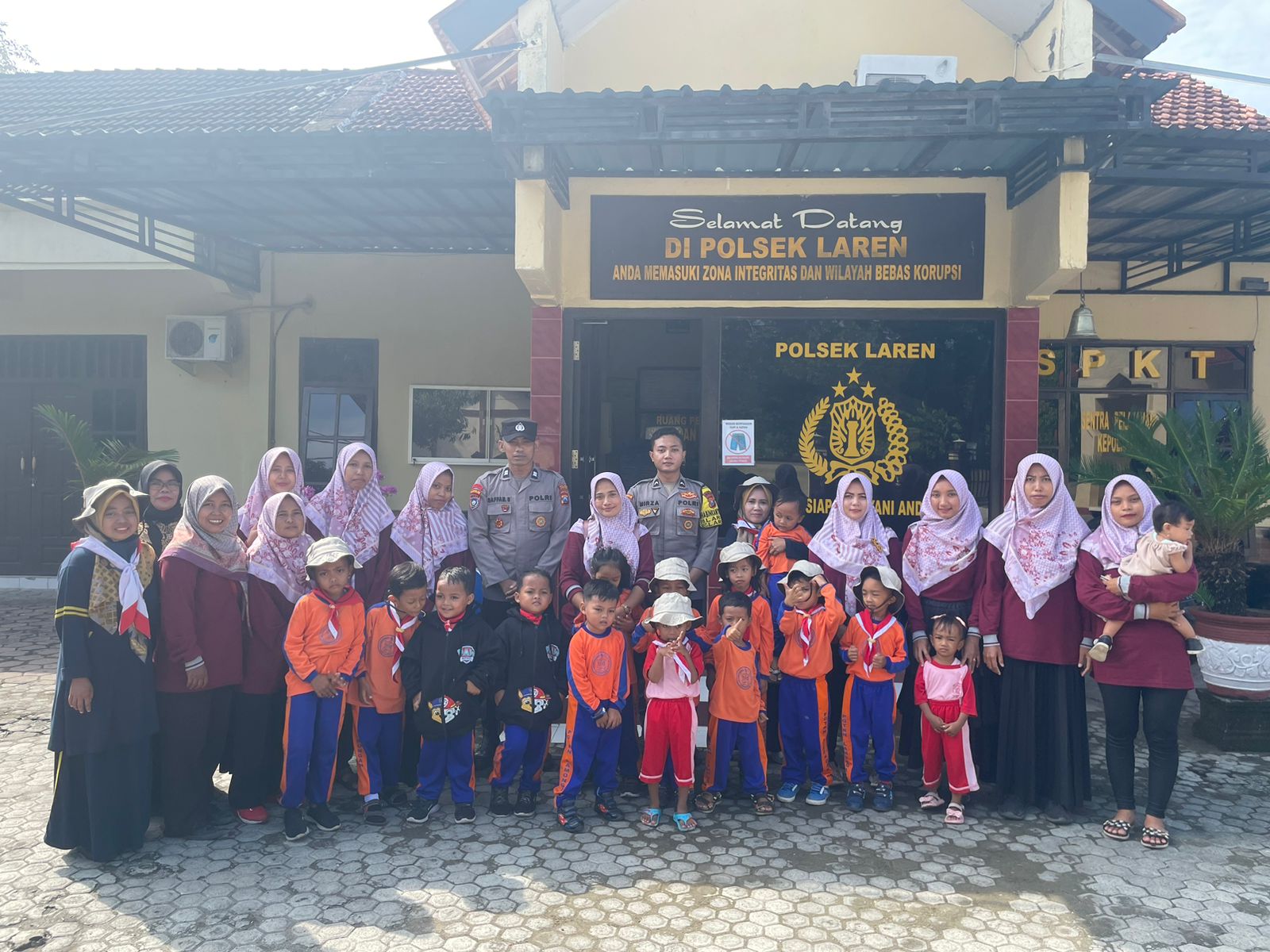 Lamongan, Mediabangsanews.com || Anggota Polsek Laren Aiptu Shafan Shafa dan Bripda Mirza, mendapat kunjungan dari TK PGRI Tunas Harapan Bangsa, lalu Mengenalkan beragam profesi kepada anak-anak agar bisa melalui pembelajaran. Terkait hal itu, TK PGRI Tunas Harapan Desa Keduyung Kecamatan Laren, menggelar acara tema profesi di Mapolsek Laren, Dengan mengenalkan tugas tugas dan Pekerjaan Polisi di luar kelas. (14/06/24)