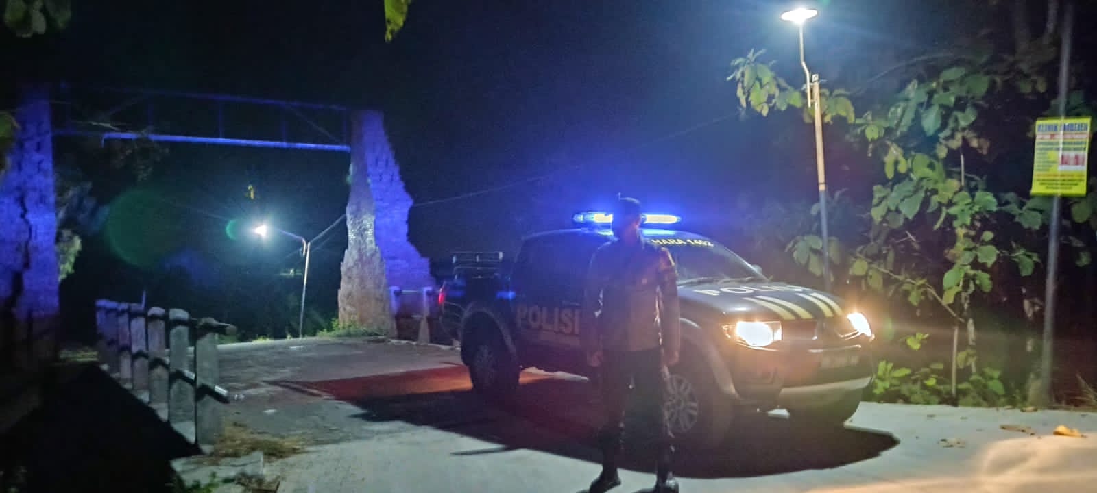 Patroli dengan menyalakan lampu rotator, anggota Polsek Sekaran memantau di jalan raya Desa Kendal Kecamatan Sekaran, dalam rangka antisipasi 3C Curat, Curas, Curanmor, serta gesekan antar pemuda,