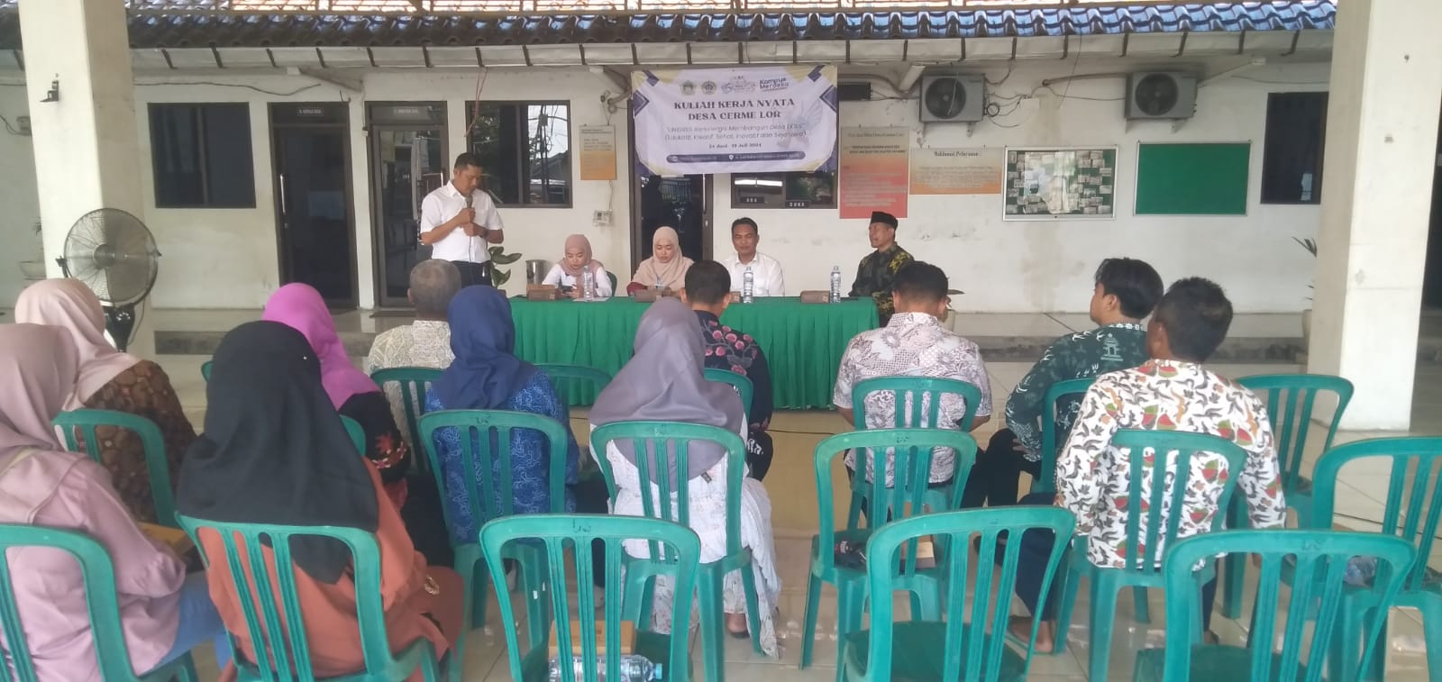 “Kami akan melaksanakan program KKN di desa Cerme lor ini kami mulai sejak tanggal 24 Juni 2024 hingga 19 Juli 2024 dengan mengusung tema “UNIGRES bersinergi membangun desa EKSIS (edukasi, kreatif, sehat, inovasi dan sejahtera)” ujar Bambang.