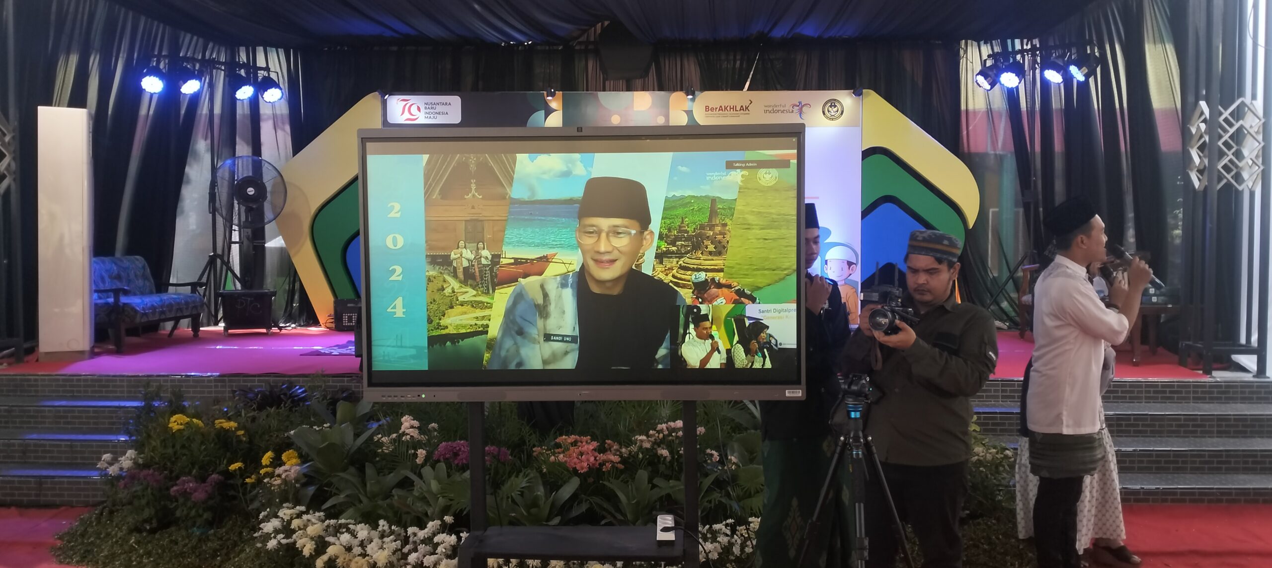 Menteri Pariwisata dan Ekonomi Kreatif H. Sandiaga Salahuddin Uno melalui Zoom Meeting menyampaikan ‘Alhamdulillah Wall Syukuri lah kita bisa hadir dan berkumpul di acara yang luar biasa ini.