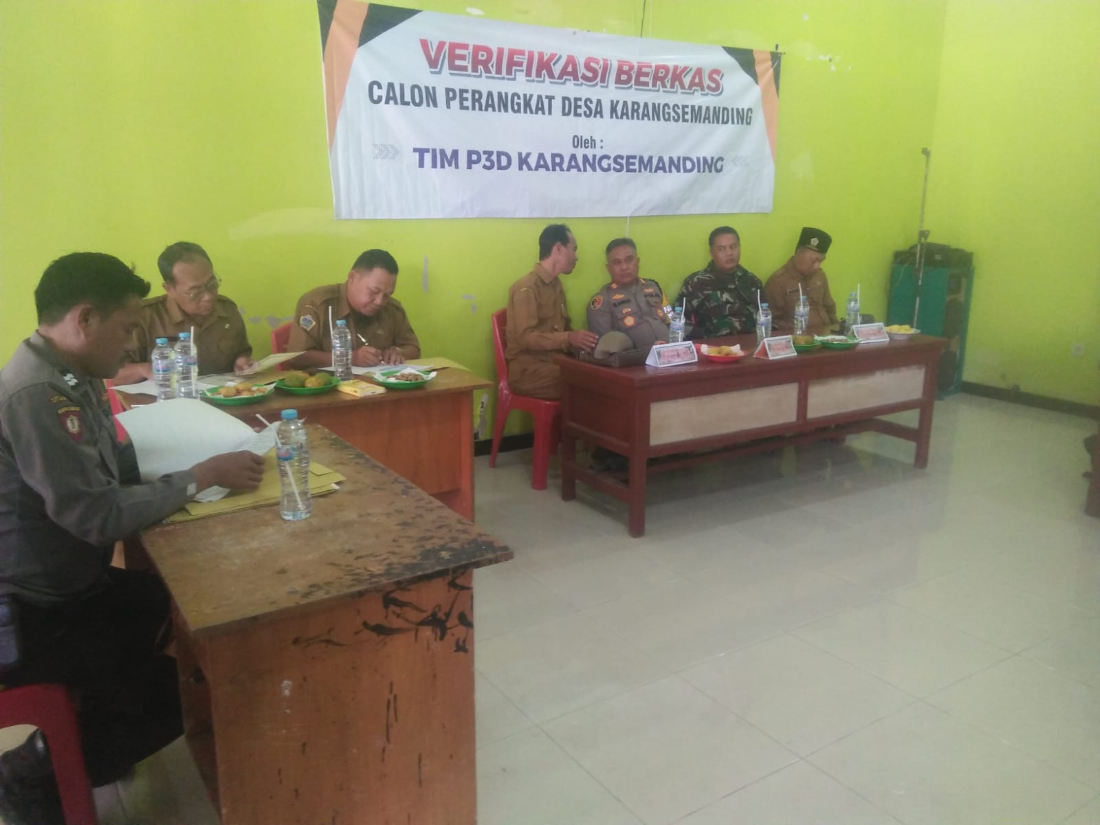 Panitia Penjaringan Perangkat Desa (P3D) Desa Karangsemanding sudah sampai tahapan Verifikasi berkas calon perangkat Desa setempat.