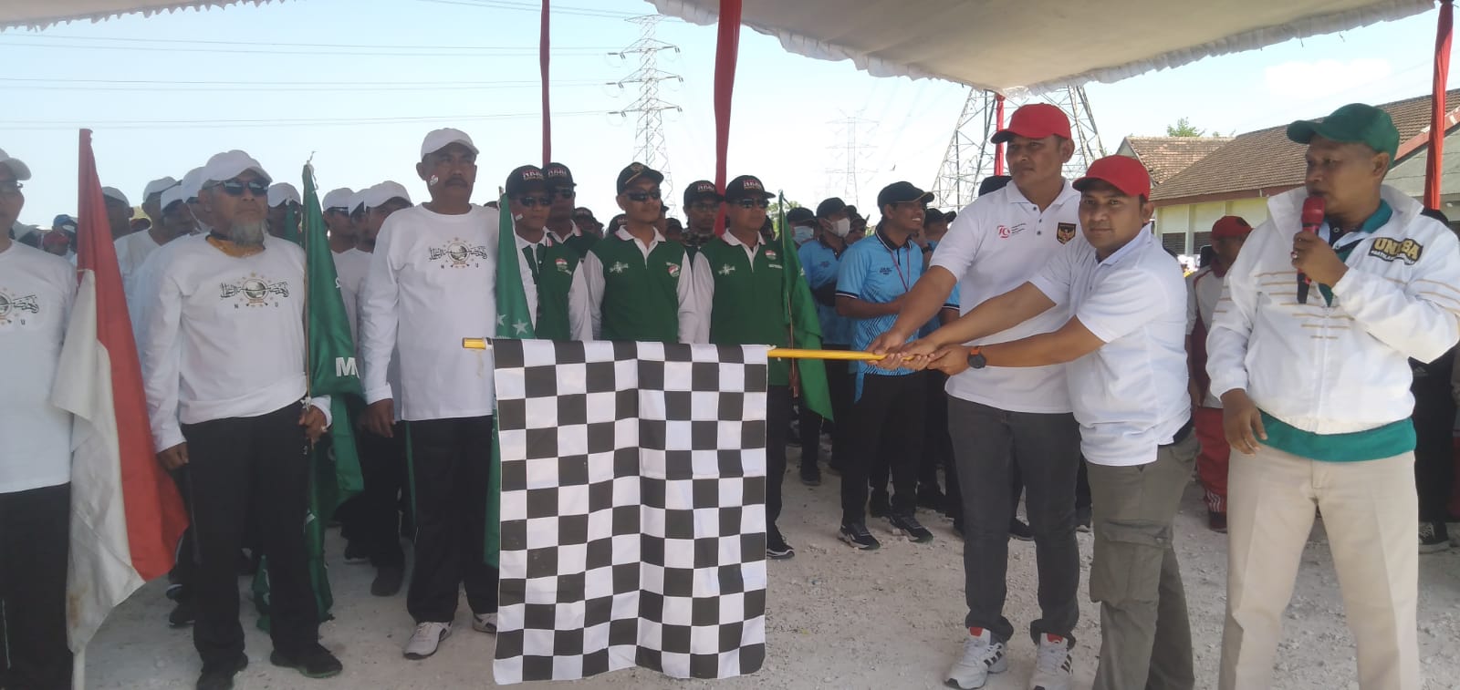 “Namun dengan semangat yang berkobar itu harus tetap menjaga kehati hatian karena yang akan dilewati adalah jalan raya, untuk itu diharapkan pada seluruh peserta gerak jalan agar bisa tertib, tertib dan tertib serta yang tidak kalah penting adalah tetap menjaga kesehatan”, pesan Camat Bagus.