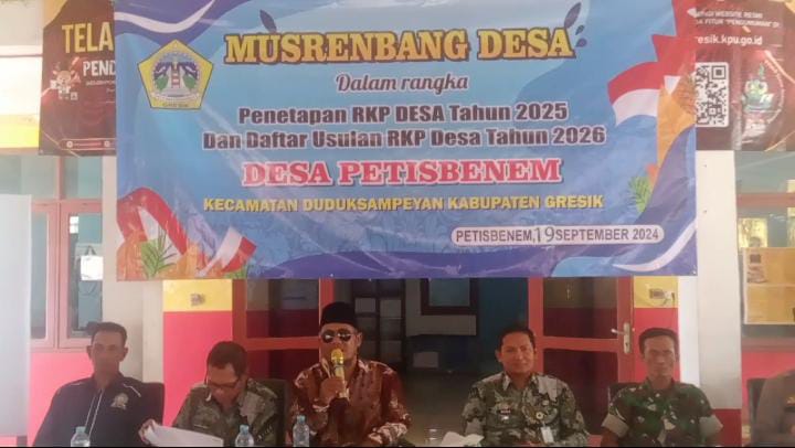 Dalam rangka penetapan RKP Desa tahun 2025 dan Daftar Usulan (DU RKP) tahun 2026 Pemerintah Desa (Pemdes) Petisbenem menggelar Musyawarah Perencanaan Pembangunan Desa (MUSRENBANGDES) yang dilaksanakan di pendopo balaidesa Petisbenem Kecamatan Duduk Sampeyan Kabupaten Gresik, Kamis (19/09/2024). Pagi