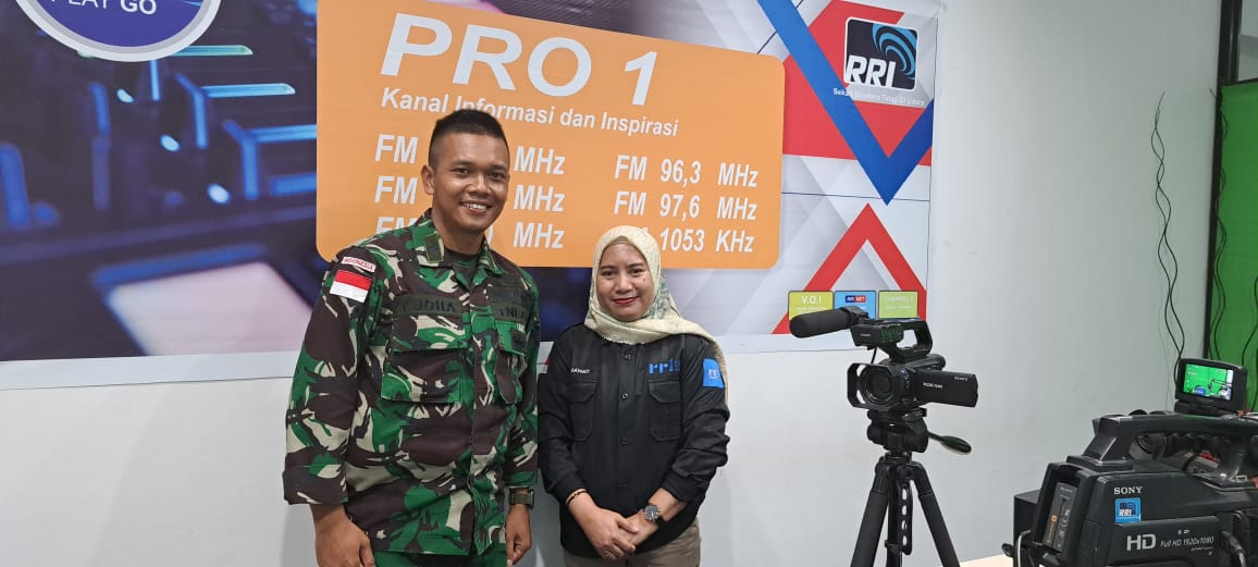 Dansatgas Yonif 512/QY, Letkol Inf Galih Sakti Pramudyo yang diwakili oleh Perwira Penerangan Letda Chk Satria Yudha Pamungkas, S.H., menyapa masyarakat Papua melalui siaran Radio Republik Indonesia (RRI) Kota Jayapura, Senin (23/9/2024).