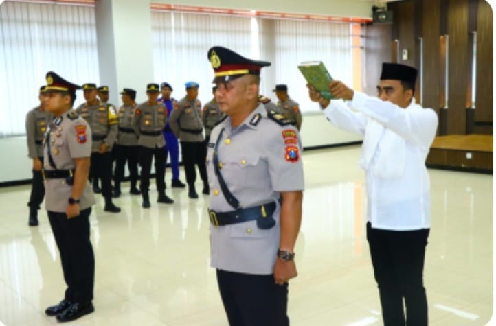 Kapolres Gresik, AKBP Arief Kurniawan, S.I.K., memimpin upacara pelantikan dan serah terima jabatan Kapolsek Manyar serta Kasat Intelkam Polres Gresik.