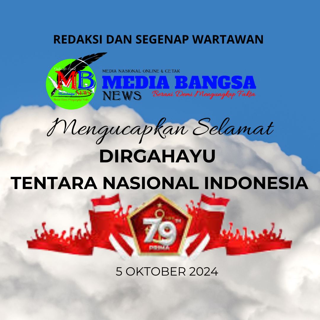 Pada kesempatan kali ini saya Pimpinan Redaksi dan segenap wartawan Mediabangsanews.com mengucapkan selamat HUT TNI yang ke 79 di tahun 2024.