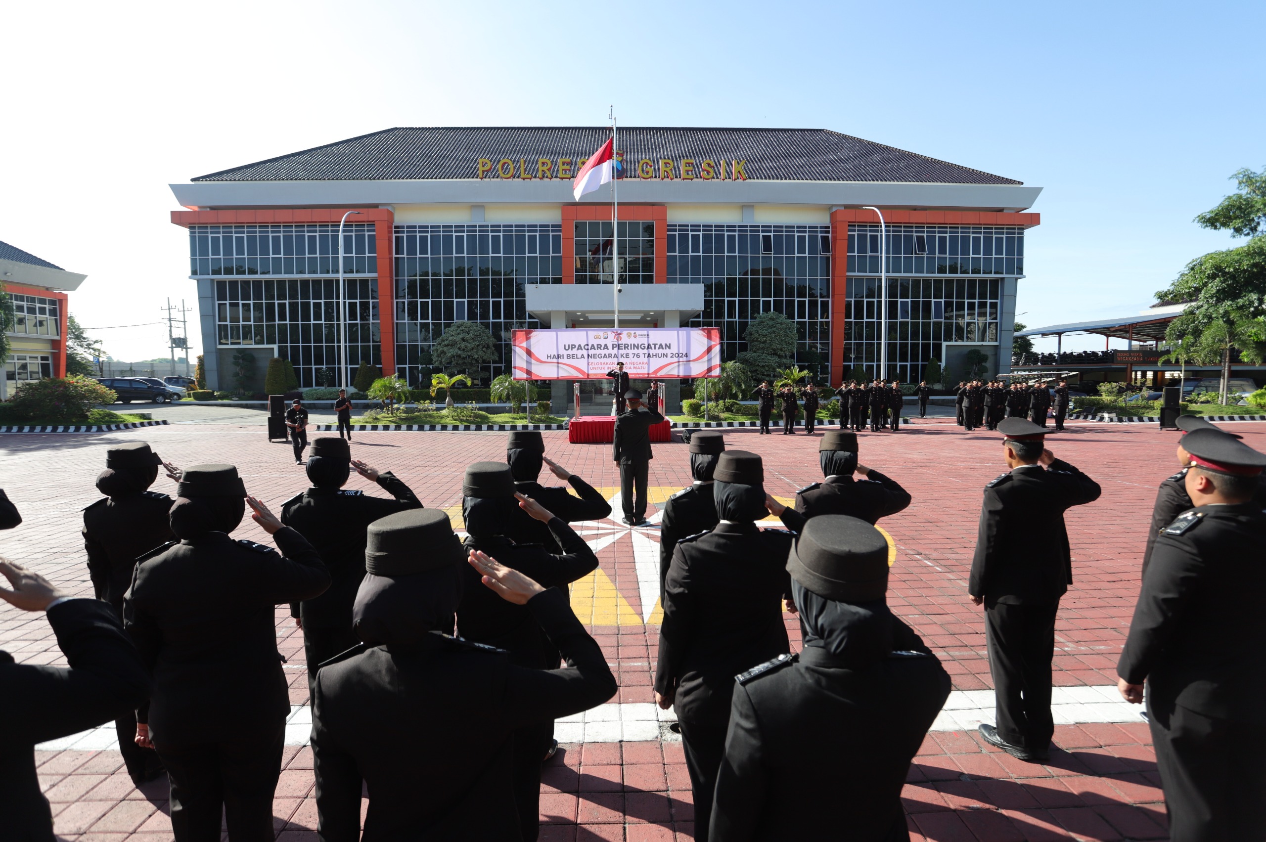 Dalam rangka memperingati Hari Bela Negara ke-76, jajaran Polres Gresik menggelar upacara di Halaman Mapolres Gresik, Kamis (19-12-2024). Upacara ini diikuti oleh Pejabat Utama (PJU) Polres Gresik, para Kapolsek, serta seluruh personel Polres Gresik. Waka Polres Gresik, Kompol Danu Anindhita Kuncoro Putro, bertindak sebagai pemimpin upacara.