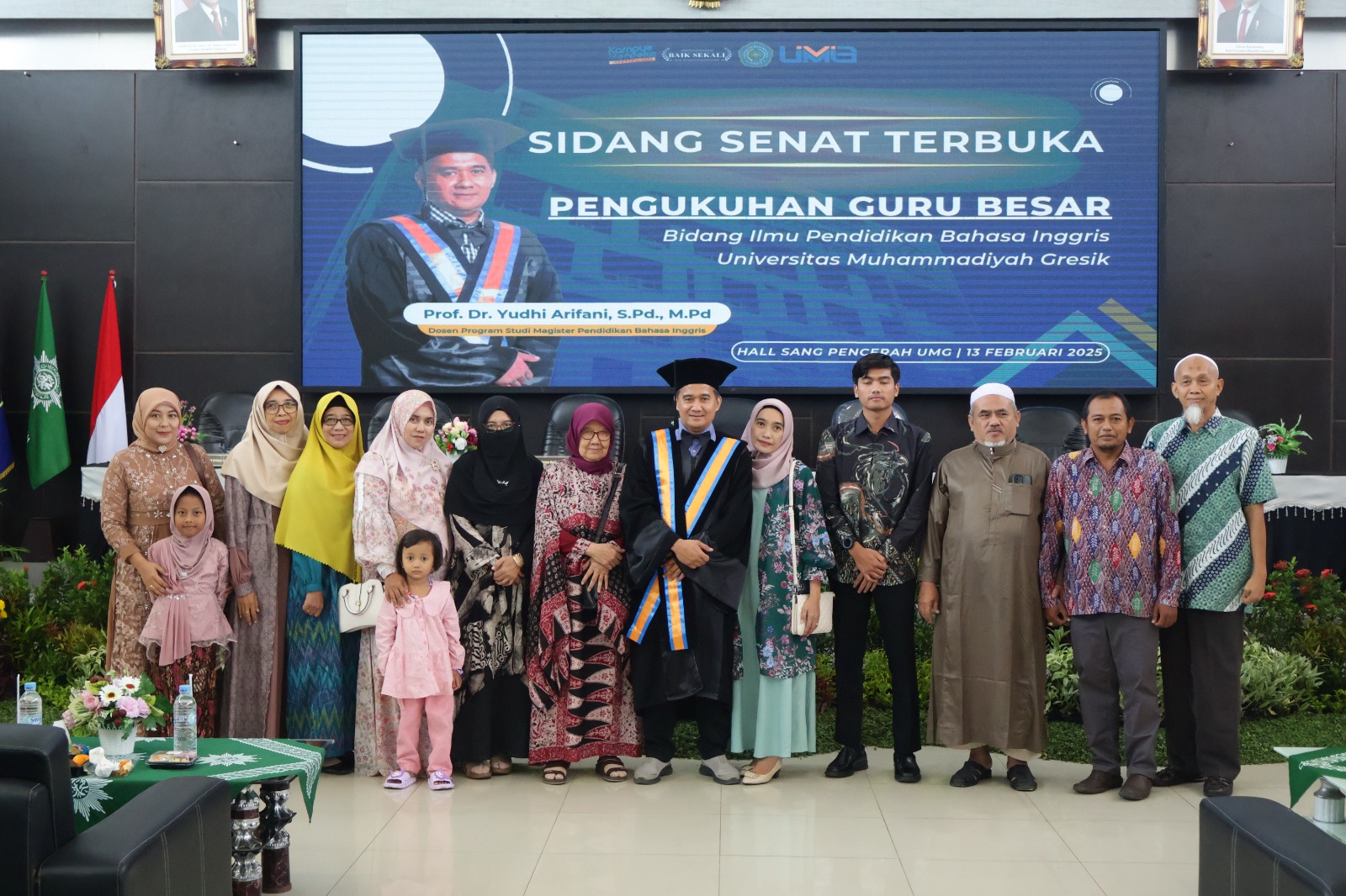 Universitas Muhammadiyah Gresik (UMG) kembali mengadakan Sidang Senat Terbuka dalam rangka Pengukuhan Guru Besar pada 13 Februari 2025. Acara yang berlangsung di Hall Sang Pencerah UMG ini dihadiri oleh Rektor, Civitas Akademika, kolega, tamu undangan, serta keluarga. Kali ini, Prof. Dr. Yudhi Arifani, S.Pd., M.Pd. resmi dikukuhkan sebagai Guru Besar dalam bidang EFL Teaching & Thesis and Research Report.