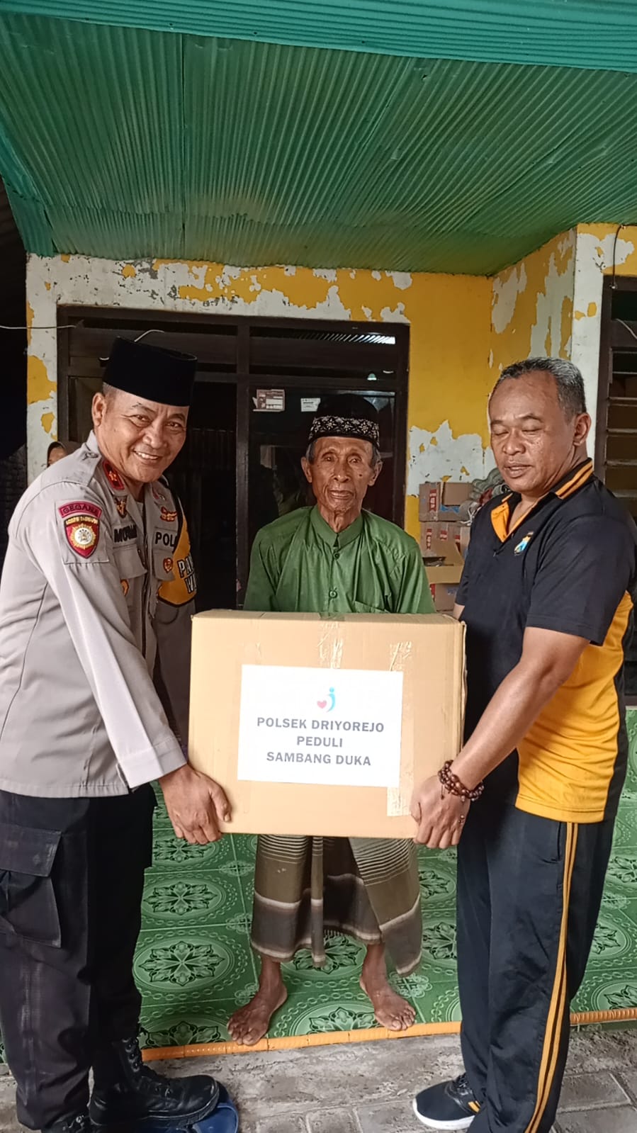 Jum’at berkah, Kapolsek Driyorejo Kompol Mushiram, S.H., bersama perwira dan anggota Polsek memberikan santunan kepada keluarga Refan Viga Arisona Arahman, (29) warga Desa Randegansari, Kecamatan Driyorejo yang menjadi korban lakalantas dan meninggal dunia di jalan raya Randegan sari pekan lalu.