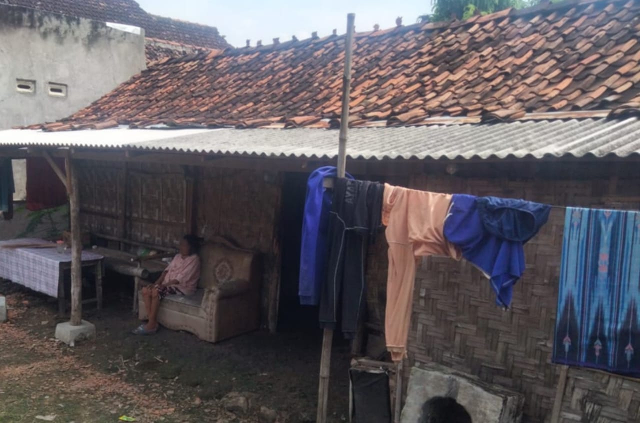Rumahnya pun terbilang sangat memprihatinkan dan jauh dari kata layak, karena rumah yang ditinggalinya adalah kandang kambing milik Suyono. Beberapa kambing menemani setiap hari, gubug reot dari bambu berlantai tanah menambah aroma potret kemiskinan.