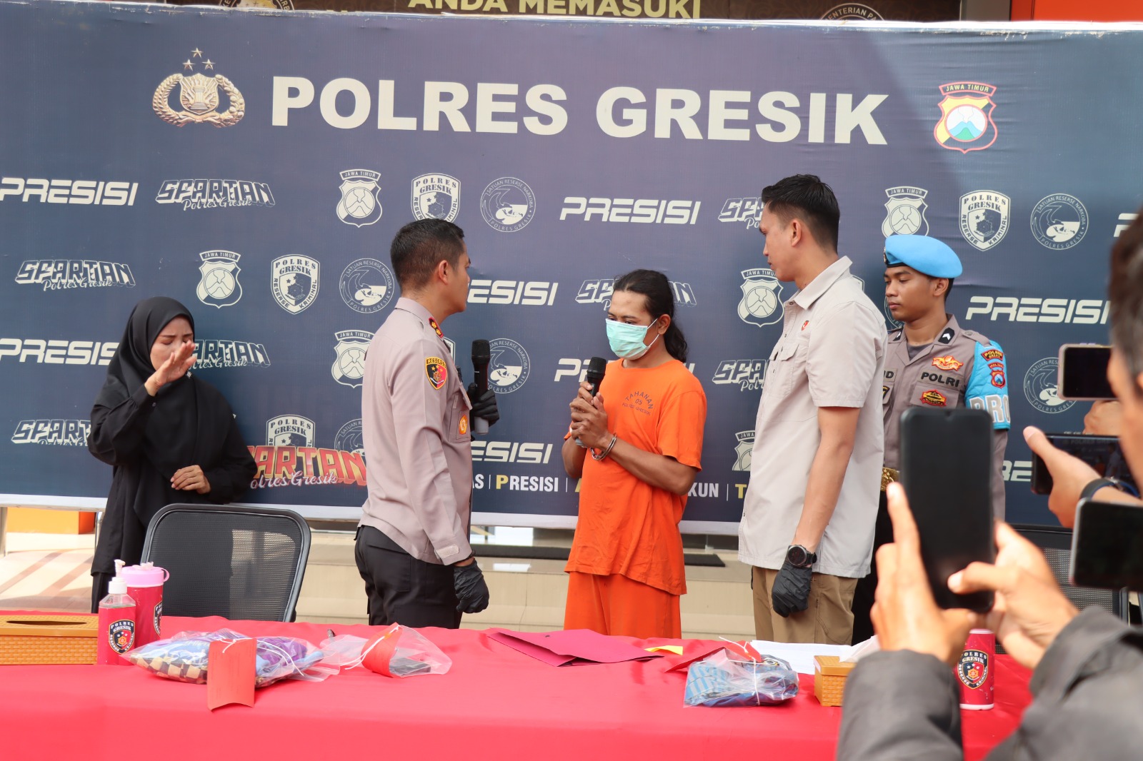 Polres Gresik berhasil mengungkap kasus tindak pidana kekerasan seksual terhadap anak yang dilakukan oleh seorang ayah tiri terhadap anak sambungnya sendiri.