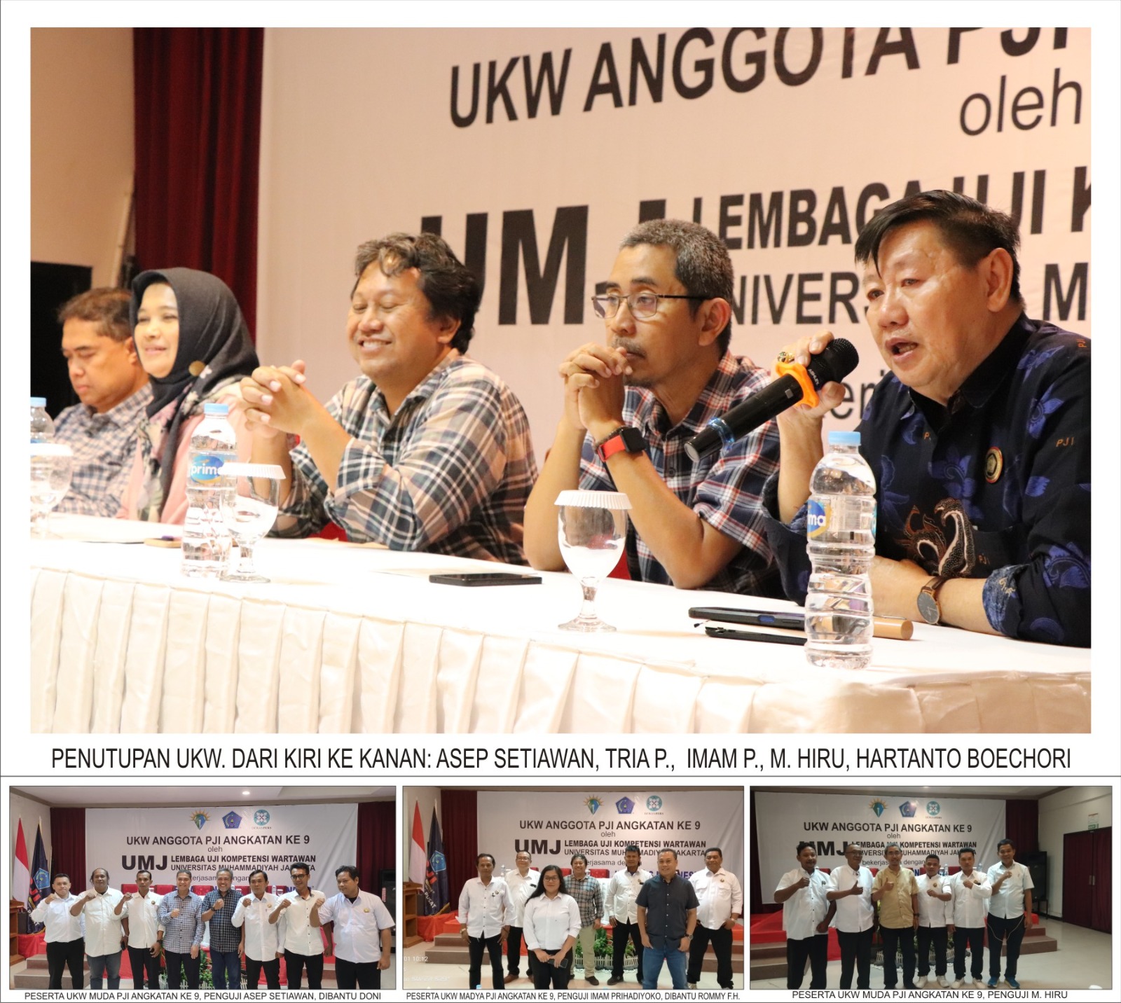 UKW Anggota PJI Angkatan ke-9 (Uji Kompetensi Wartawan Anggota Persatuan Jurnalis Indonesia Angkatan ke-9) yang digelar di Hotel Grand Trisula Indramayu, 30 Mei – 1 Juni 2025, telah rampung. Dan membanggakan, seluruhnya dinyatakan kompeten oleh tim penguji dari LUKW UMJ (Lembaga Uji Kompetensi Wartawan Universitas Muhammadiyah Jakarta) yang bekerja sama dengan PJI.