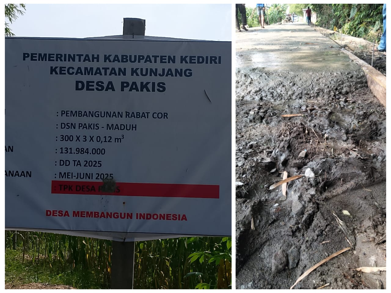 Pembangunan Rabat Beton Dusun Pakis- Madu, Desa Pakis, Kecamatan kunjang, Kabupaten Kediri Patut Dipertanyakan.