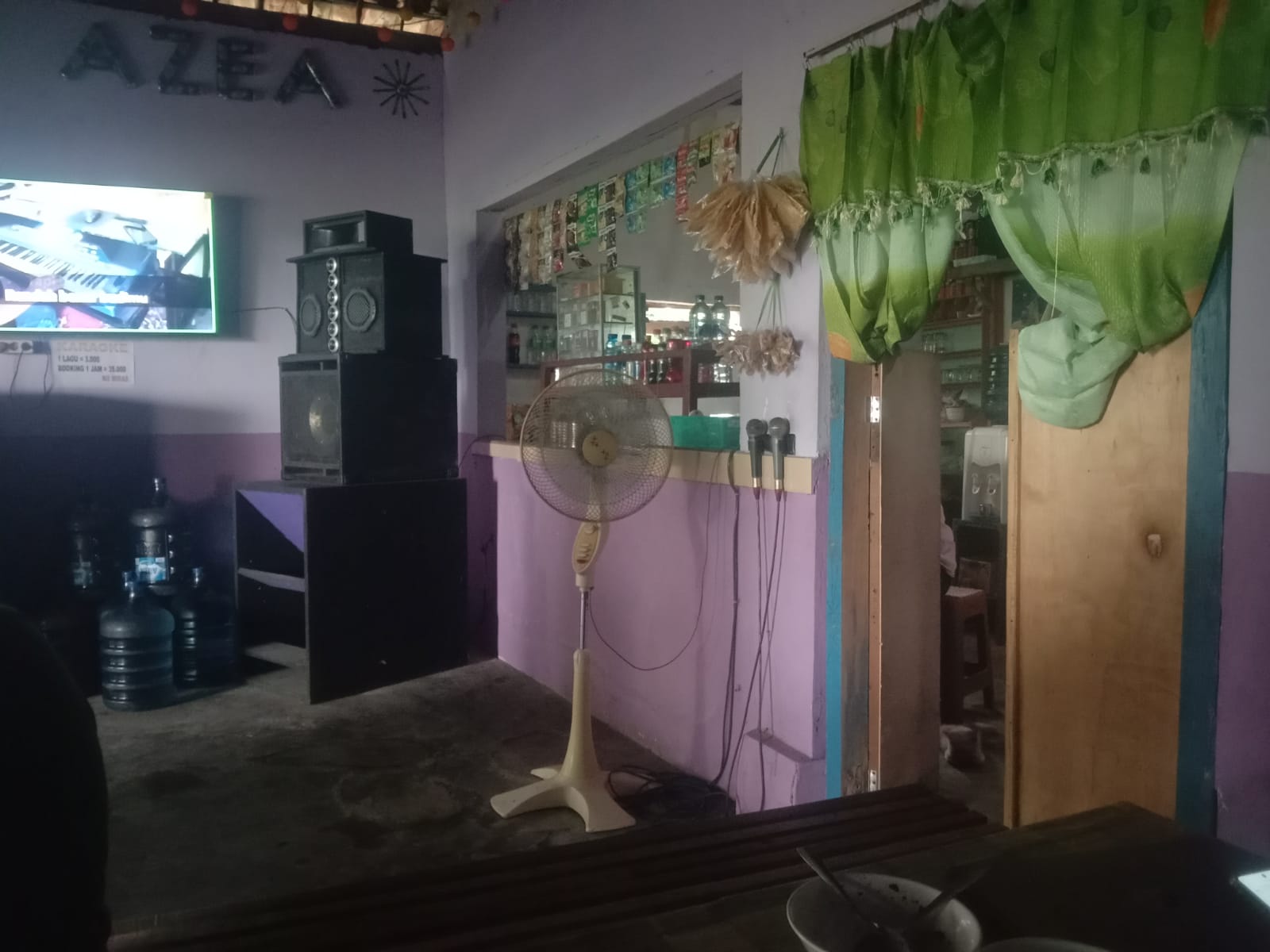 ketika sampai di ujung jalan terdapat beberapa warung yang menyediakan fasilitas untuk menarik para pelanggan yaitu karaoke.