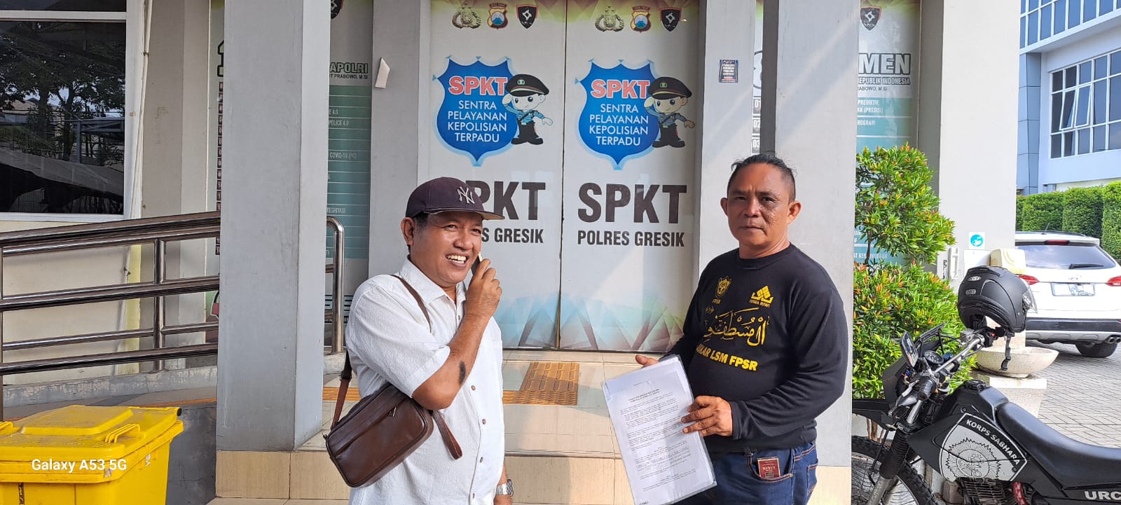 “Mau laporan,” ujar Qosim didampingi Ketua LSM FPSR saat masuk ke ruang SPKT Polres Gresik.