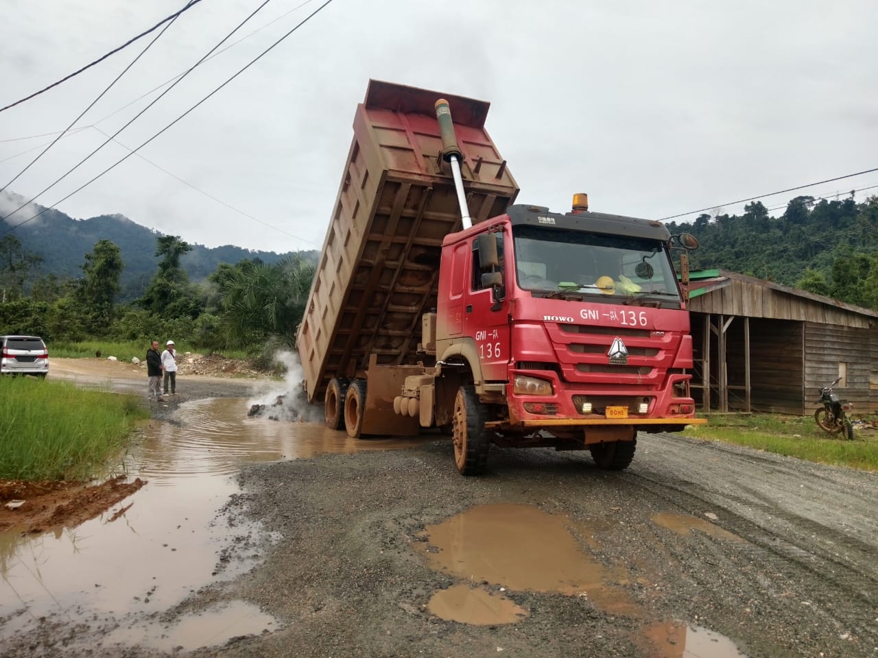 PT GNI menghabiskan ribuan Ret kendaraan 10 roda mengangkut material untuk meningkatkan jalan masyarakat setempat yang di timbun antara 1 hingga 2 meter sejak perusahaan tersebut beraktivitas di Kabupaten Morowali Utara.